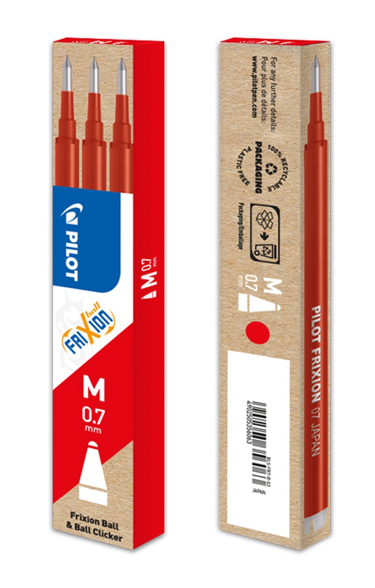 Náplň s prepisovateľným atramentom do rollerov Pilot FriXion Clickera FriXion Ball. V balení 3 ks. Gulička 0,7 mm.