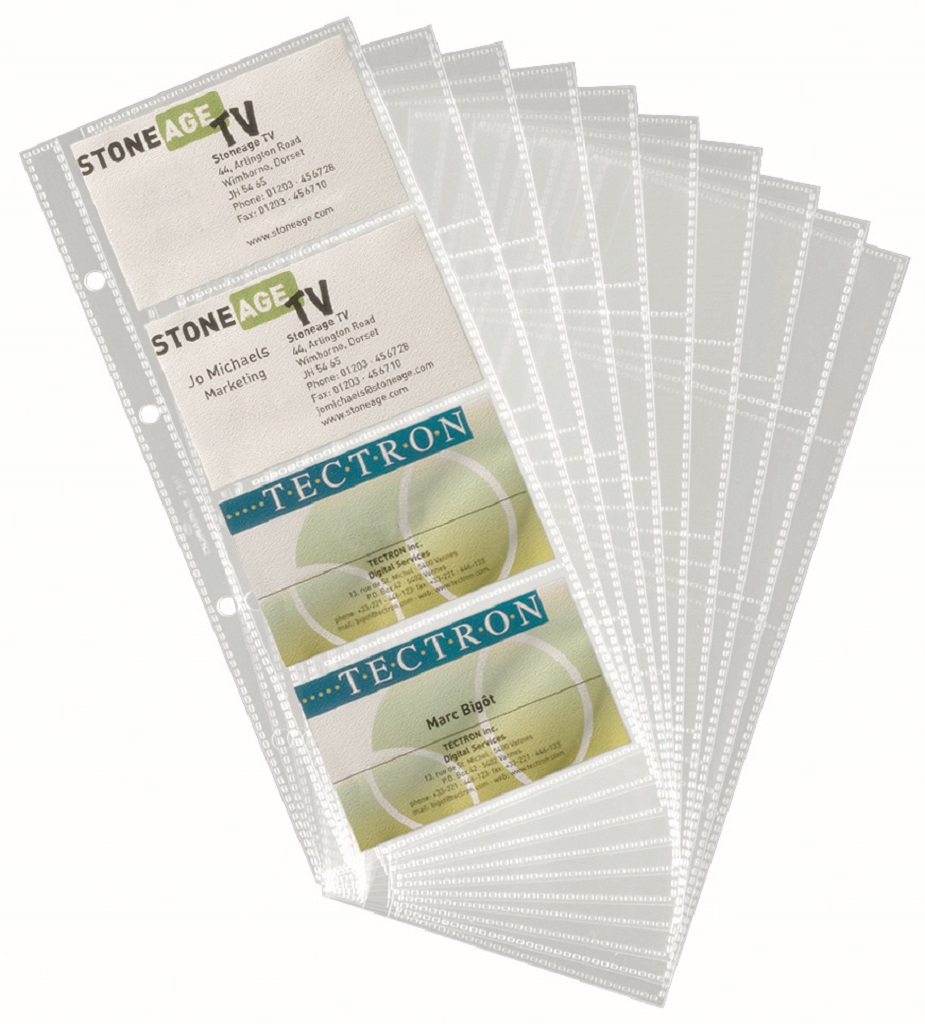 Náhradné priehľadné obaly na 80 vizitiek do vizitkárov Visifix DU238558, DU238507 a DU244101 a VISIFIX PRO DU246158. V balení 10 obalov.