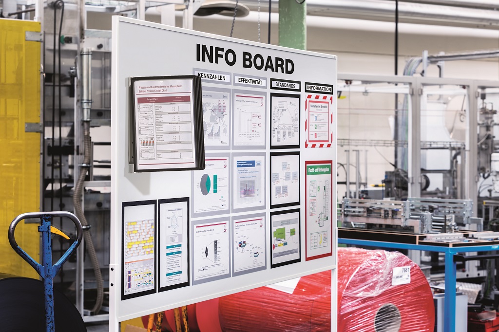 Extrémne pevný magnetický držiak na stenu, vyrobený z kovovej platne. Dodávaný s 5 displejovými polypropylénovými panelmi SHERPA®. Ideálny na použitie v priemysle, vrátane dielní a v skladoch. Jednoduché vkladanie a vyberanie panelov. Farba panelov čierna.