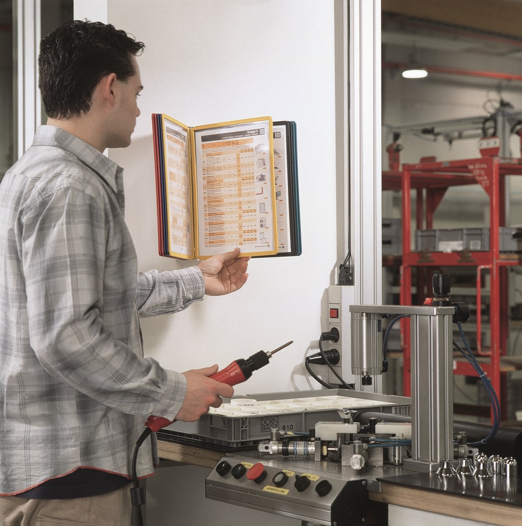 Extrémne pevný držiak na stenu vyrobený z kovovej platne s 10 displejovými polypropylénovými panelmi Sherpa s indexami. Ideálny pre použitie v priemysle, včítane dielní, skladoch, a kuchyniach. Držiak sa ľahko montuje, panely sa do držiaka jednoducho vkladajú a vyberajú. Farby panelov: po 2 ks z čiernej, červenej, žltej, zelenej a tmavomodrej pri 10 paneloch.
