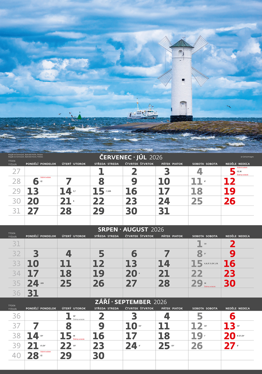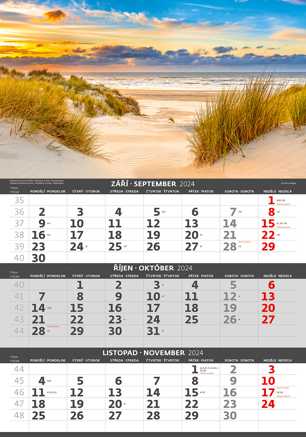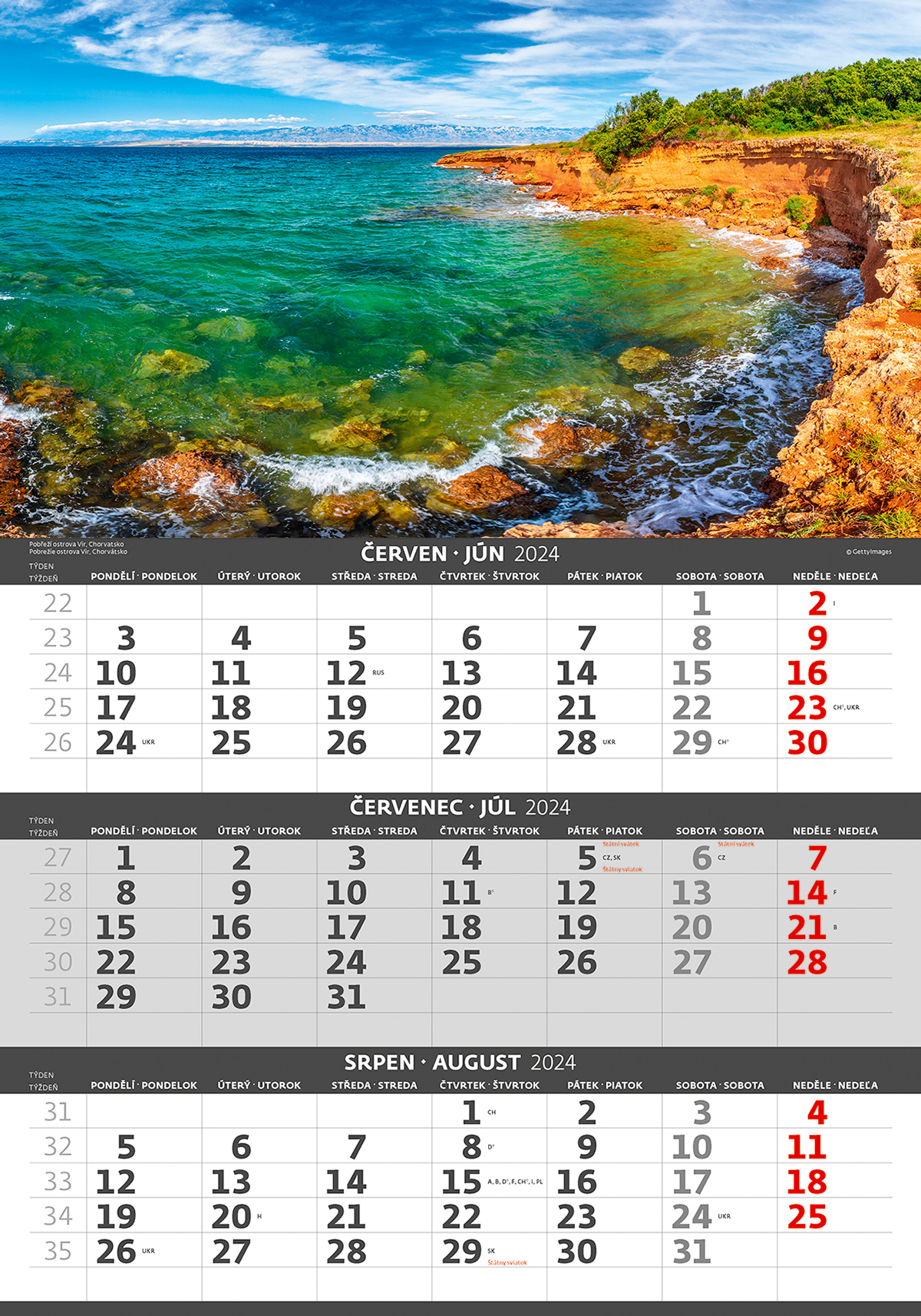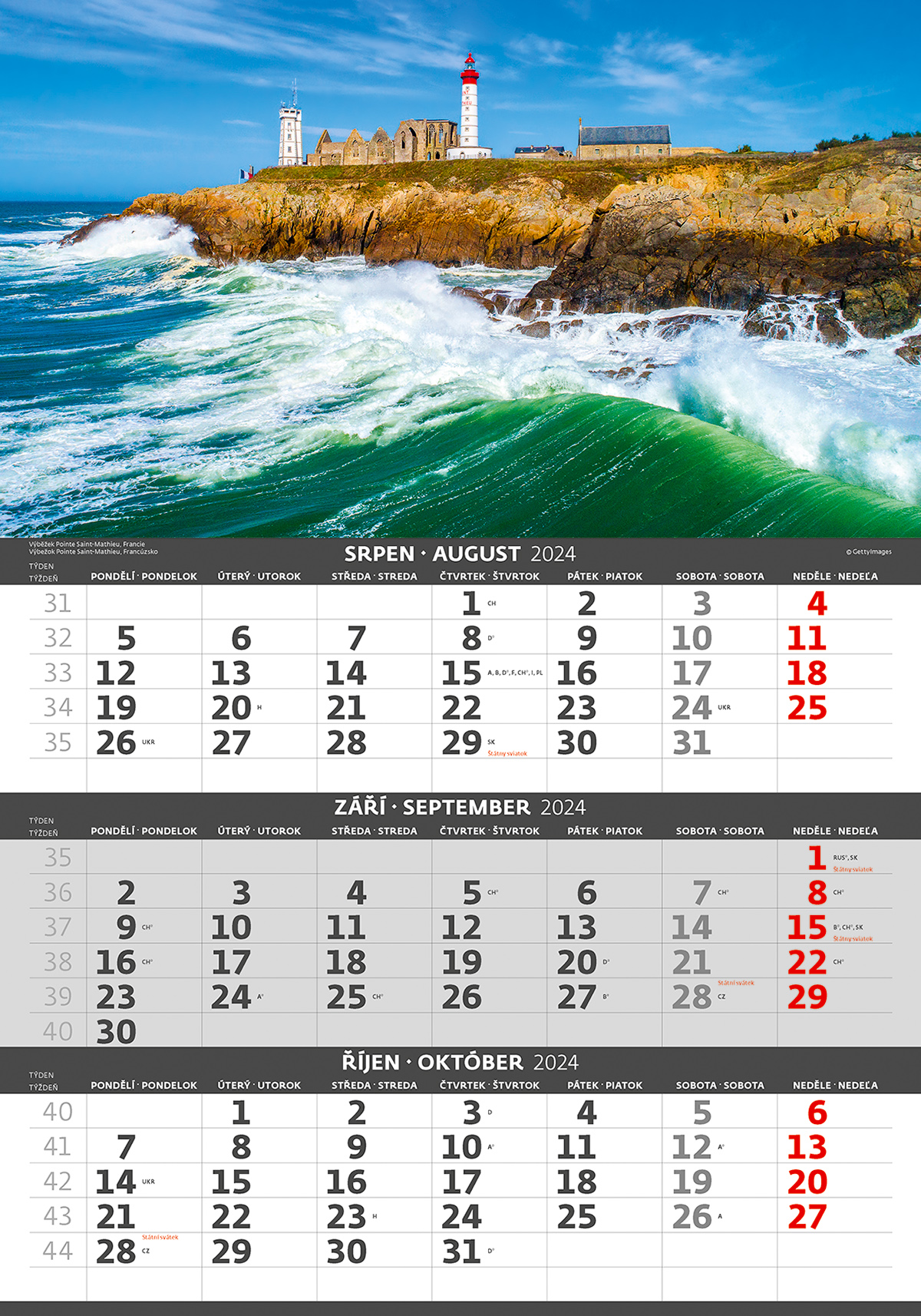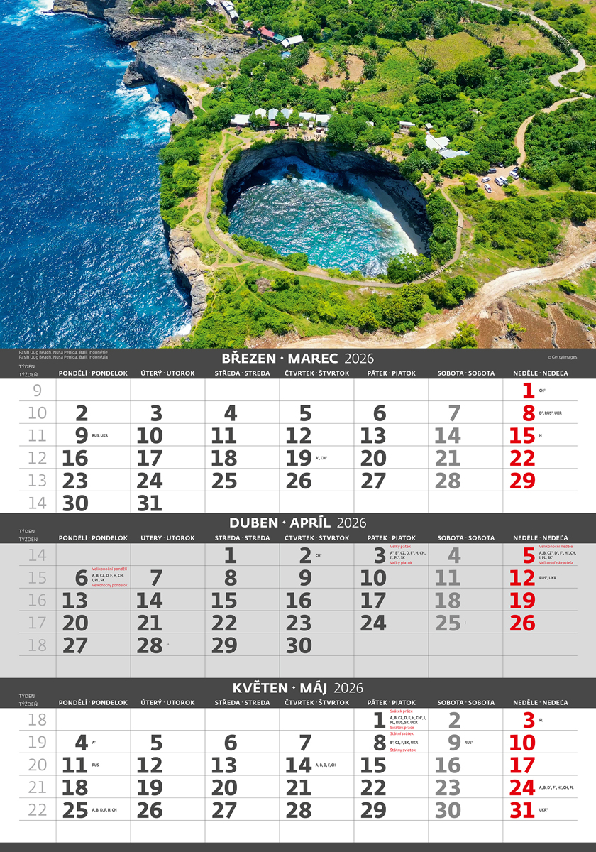 Kalendárium: české/slovenské trojmesačné so sviatkami európskych štátov (CZ / SK / A / B / D / F / H / CH / I / PL / RUS / UKR)