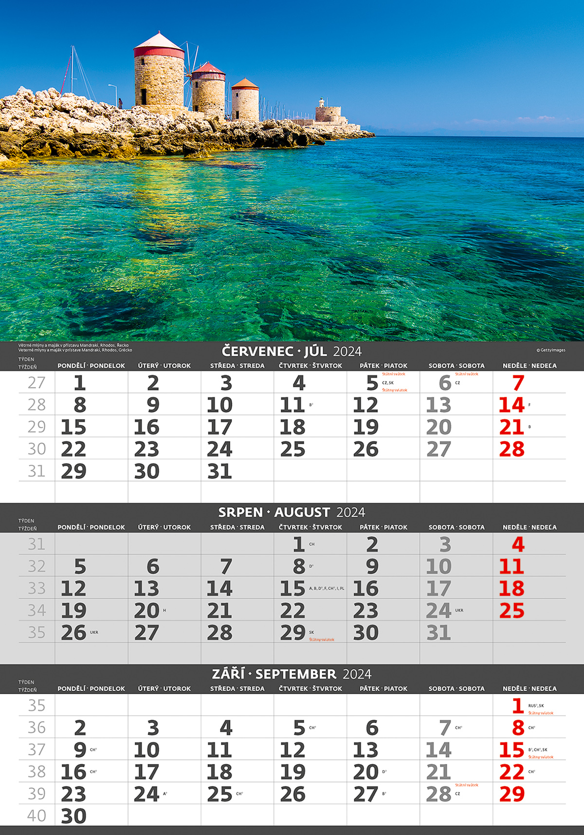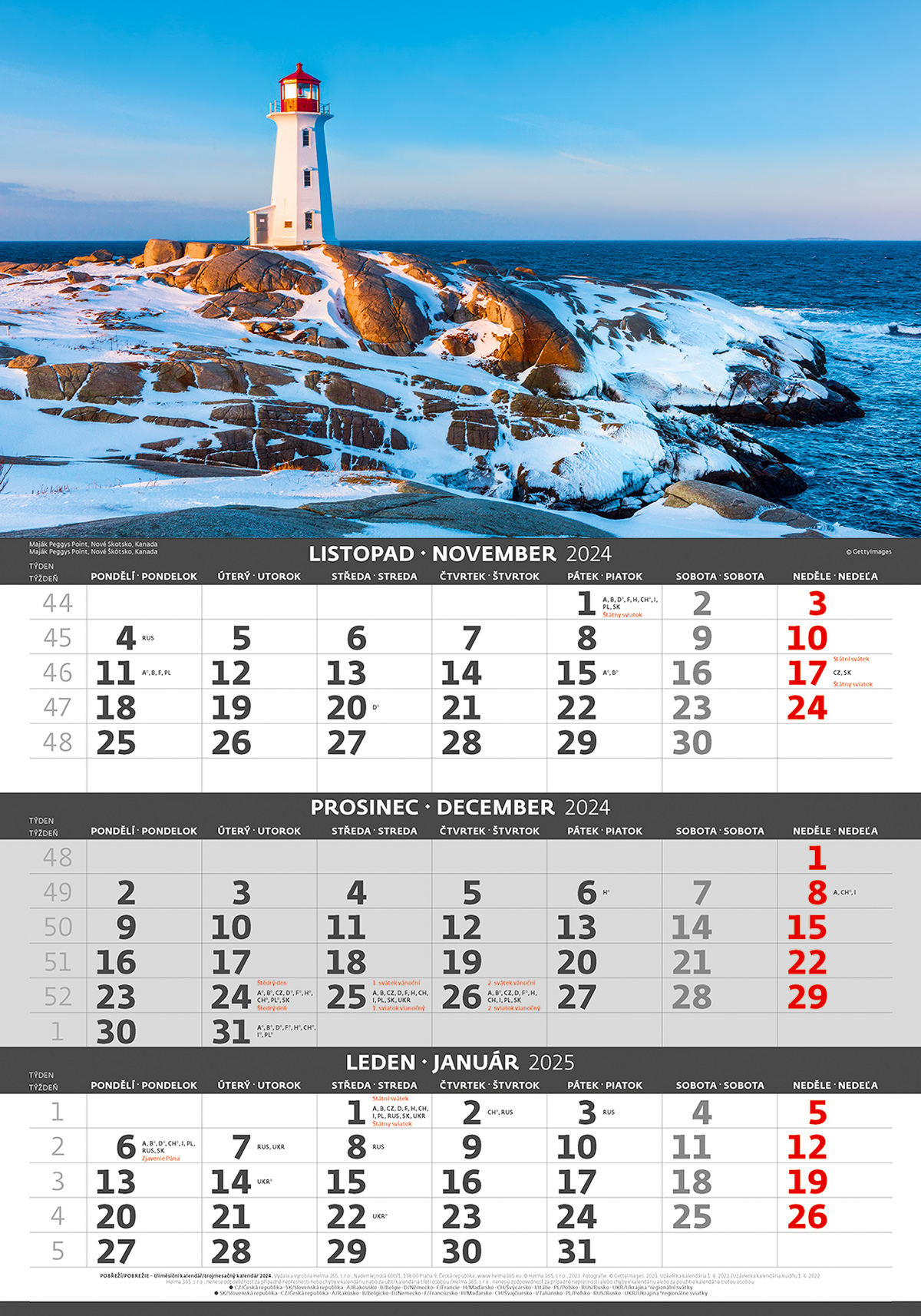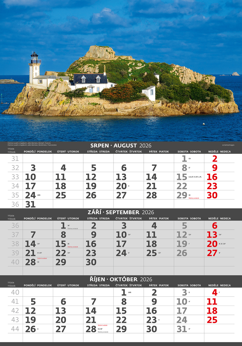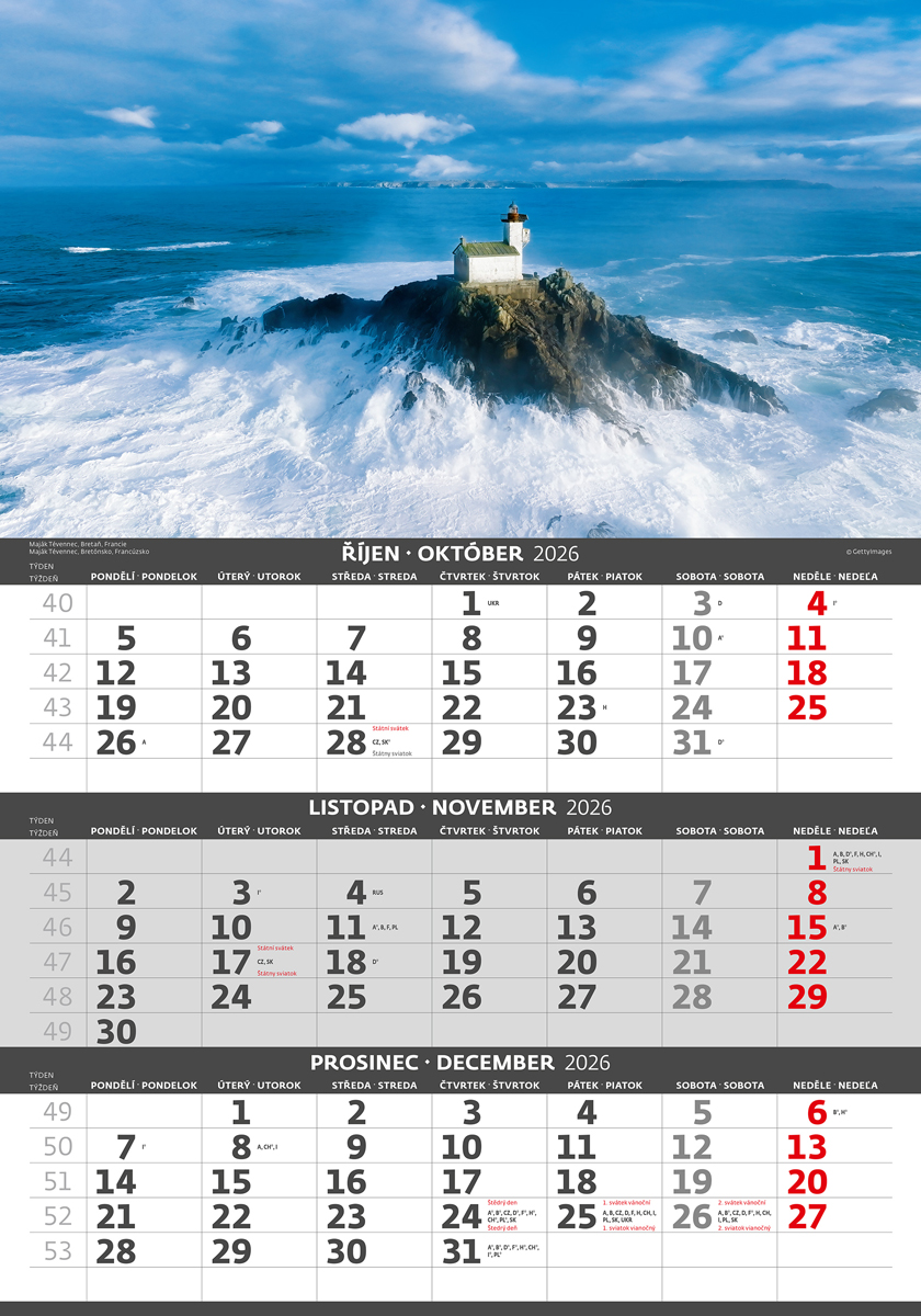 Kalendárium: české/slovenské trojmesačné so sviatkami európskych štátov (CZ / SK / A / B / D / F / H / CH / I / PL / RUS / UKR)