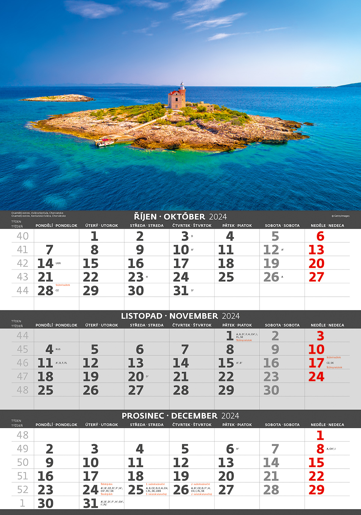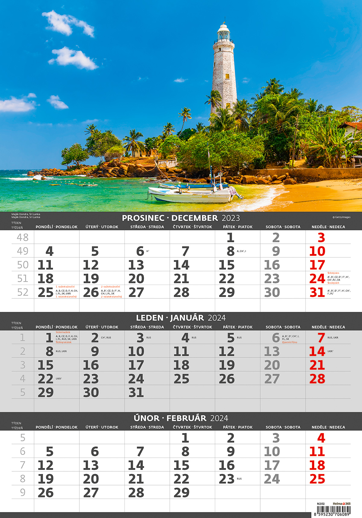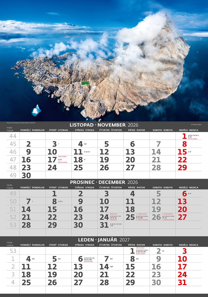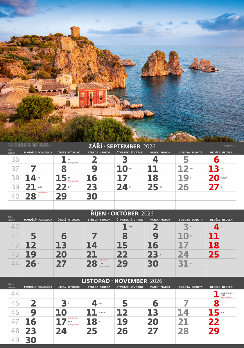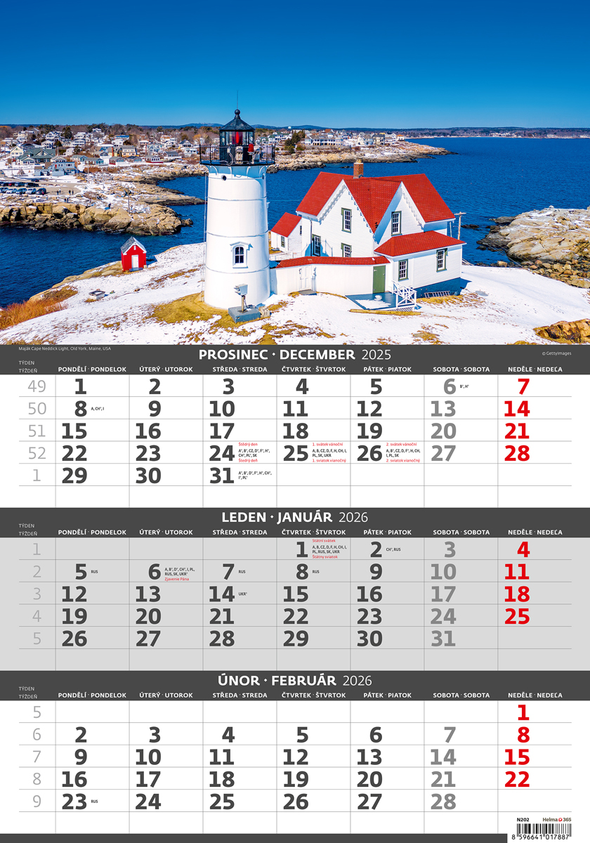 Kalendárium: české/slovenské trojmesačné so sviatkami európskych štátov (CZ / SK / A / B / D / F / H / CH / I / PL / RUS / UKR)