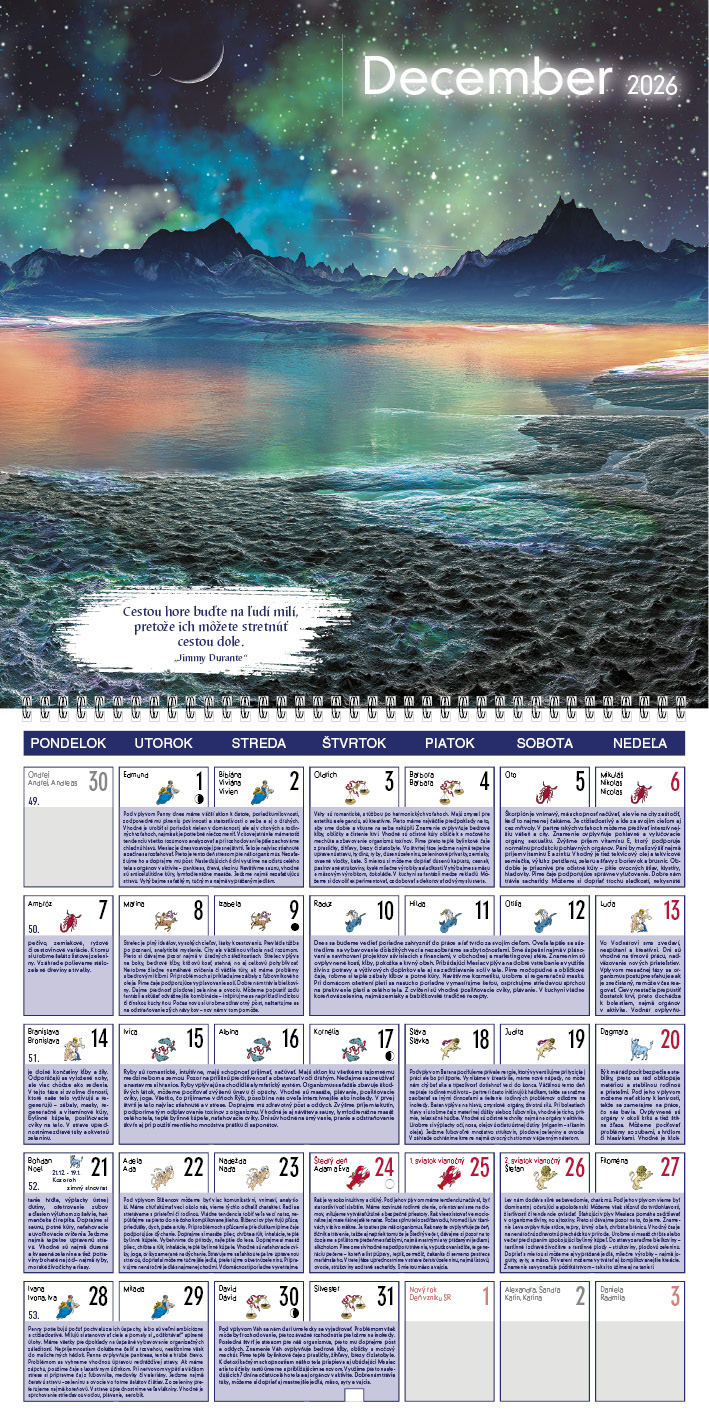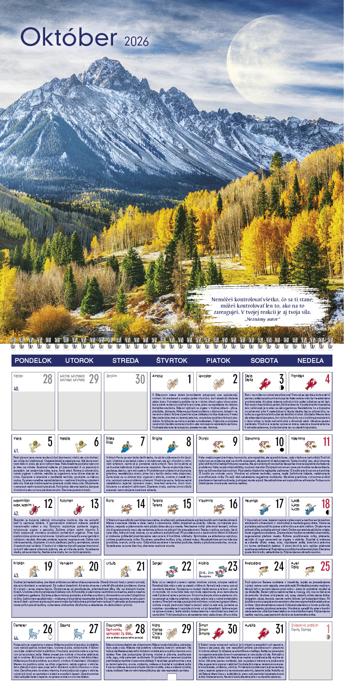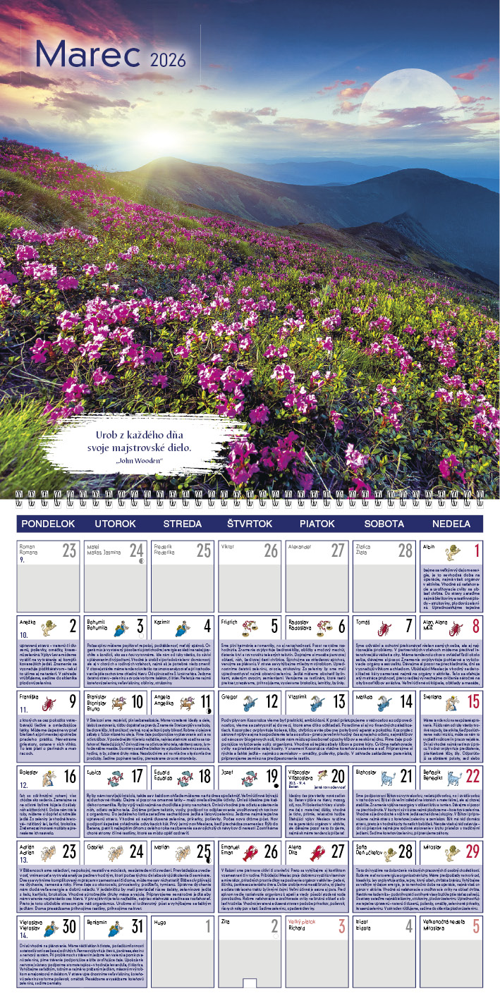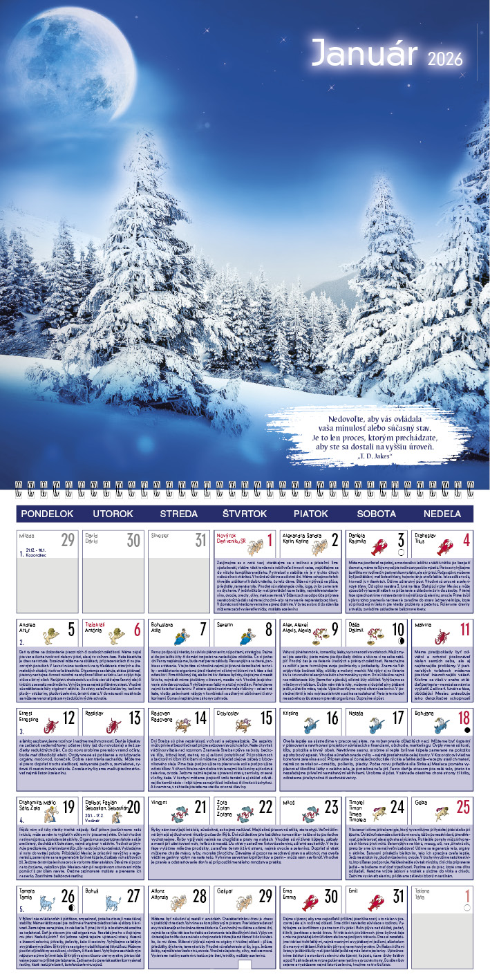 Tento kalendár ponúka praktické rady pre každý deň, ktoré sa riadia podľa fáz Mesiaca. Dozviete sa, kedy je vhodný čas na odpočinok, aktivitu, rozhodovanie či starostlivosť o telo a dušu. Každá fáza prináša odporúčania, čo robiť a čomu sa radšej vyhnúť. Silné fotografie a inšpiratívne citáty dodávajú kalendáru výnimočnú atmosféru.