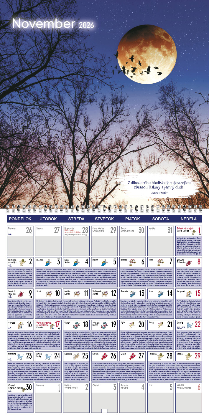 Nástenný kalendár 30 x 30 cm Lunárny 2026