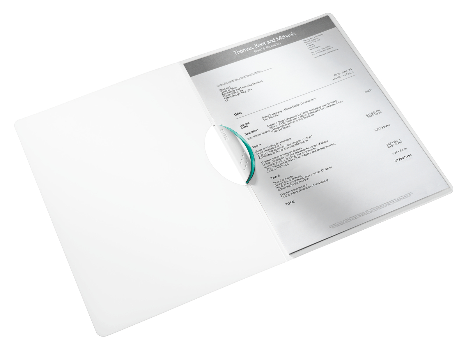 Veľmi odolné PP obaly s klipom Leitz ColorClip vo sviežich WOW farbách s dvojfarebným efektom. Ideálne na prenos alebo prezentáciu vašich dokumentov.Praktický klip chráni bezpečne papiere pred vypadnutím. Je možné vložiť do boxu na spisy, stojana na časopisy alebo odkladača Leitz WOW. Kapacita: 30 listov formátu A4 (80 g/m2). Farba ľadovo modrá.