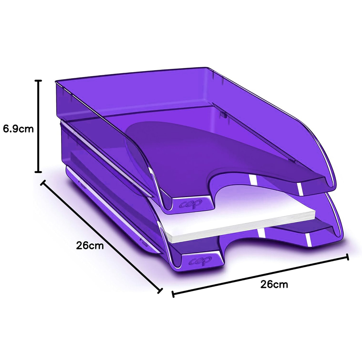 Vďaka štíhlym a elegantným líniám si tento odkladač nájde miesto nielen na stole, ale aj na bočnom stole alebo v skrini. Je vhodný na dokumenty do veľkosti 24 × 32 cm. Široký čelný výrez umožňuje ľahké vyberanie obsahu. Odkladač je stohovateľný vertikálne, aj stupňovito dozadu. Kapacita 450 listov (80 g / m²). Celkové rozmery 257 × 348 × 66 mm. Materiál 100% odolný vysokokvalitný plast. Jednotlivé kusy sa môžu navzájom jemne farebne líšiť. Väčšie balenie 10 ks. Farba transparentná fialová.