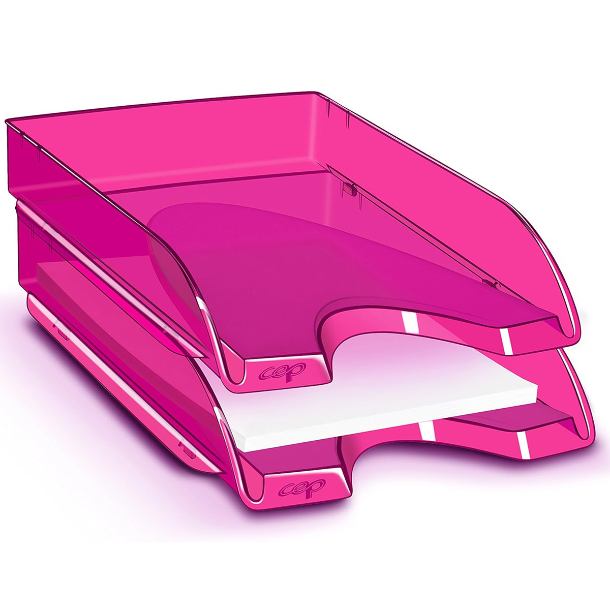 Vďaka štíhlym a elegantným líniám si tento odkladač nájde miesto nielen na stole, ale aj na bočnom stole alebo v skrini. Je vhodný na dokumenty do veľkosti 24 × 32 cm. Široký čelný výrez umožňuje ľahké vyberanie obsahu. Odkladač je stohovateľný vertikálne, aj stupňovito dozadu. Kapacita 450 listov (80 g / m²). Celkové rozmery 257 × 348 × 66 mm. Materiál 100% odolný vysokokvalitný plast. Jednotlivé kusy sa môžu navzájom jemne farebne líšiť. Väčšie balenie 10 ks. Farba transparentná ružová.