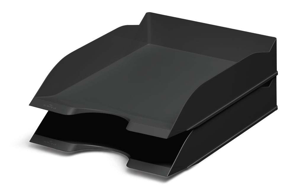 Stohovateľný buď zvisle alebo odsadene. Predná strana zabraňuje vykĺznutiu dokumentov. Pre formáty A4 až C4.