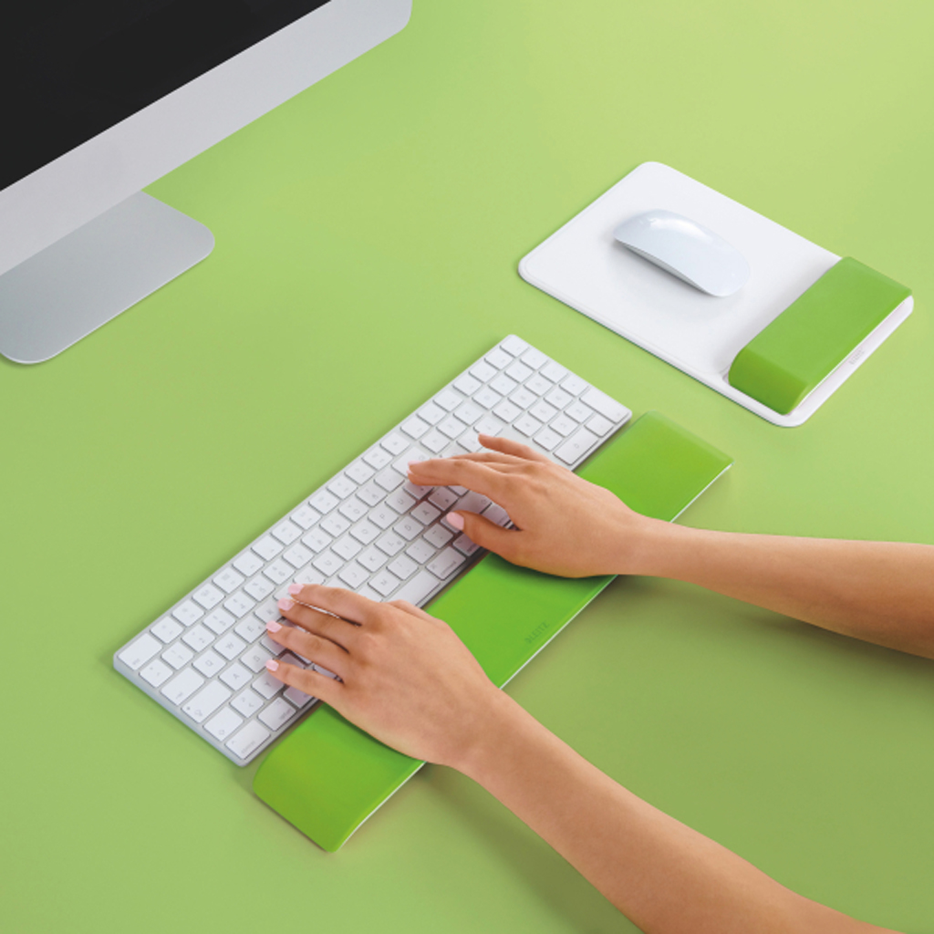 Ergonomická podložka ku klávesnici Leitz WOW je dokonalým doplnkom pre váš pracovný stôl so zameraním na správnu ergonómiu. Zaisťuje ideálnu podporu zápästia pri písaní na počítači a pomáha udržiavať zápästie v čo najprirodzenejšej polohe a podporuje tak vaše zdravie, pohodlie a zároveň zlepšuje efektivitu práce. Farba zelená.