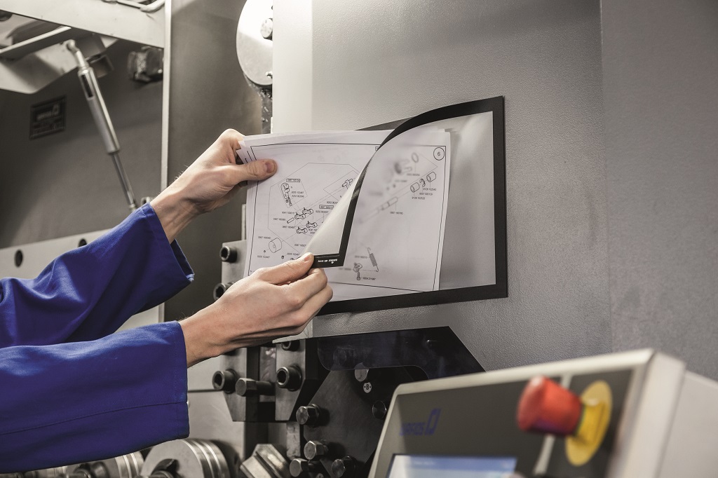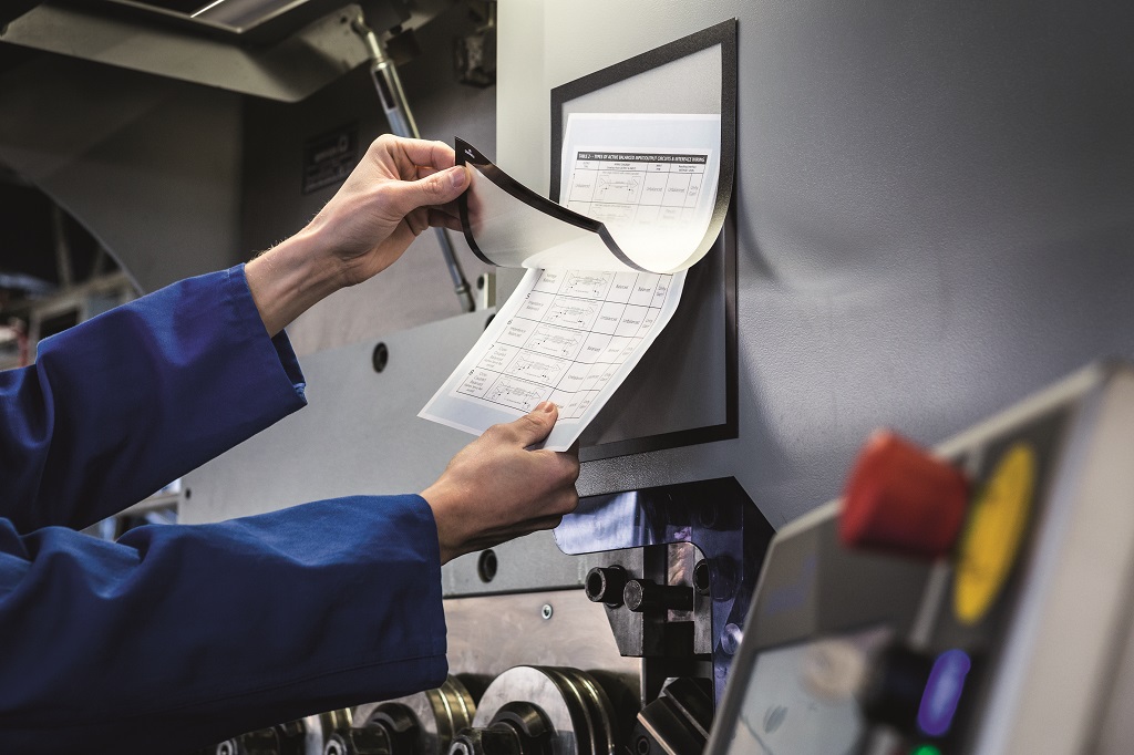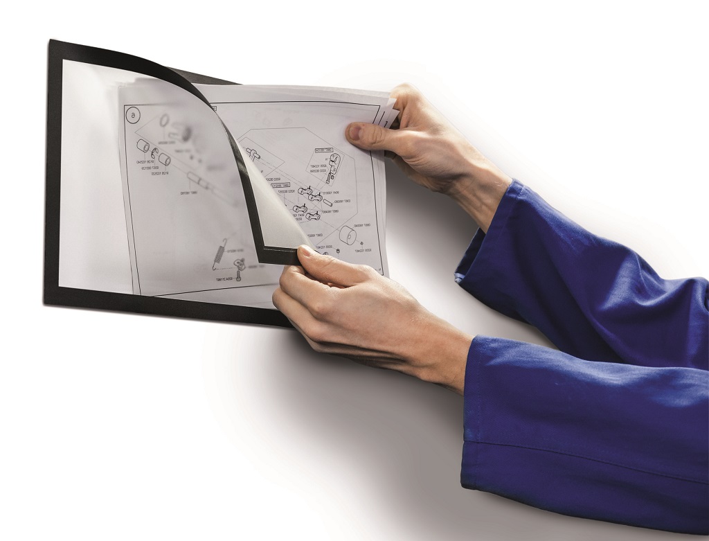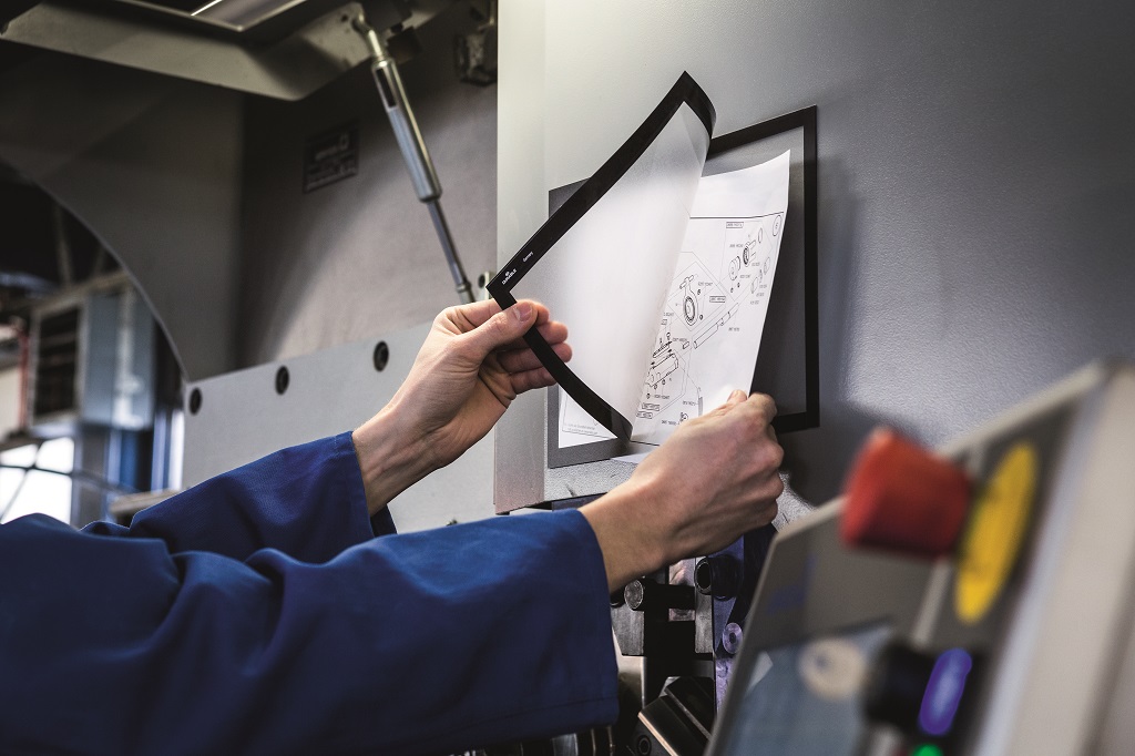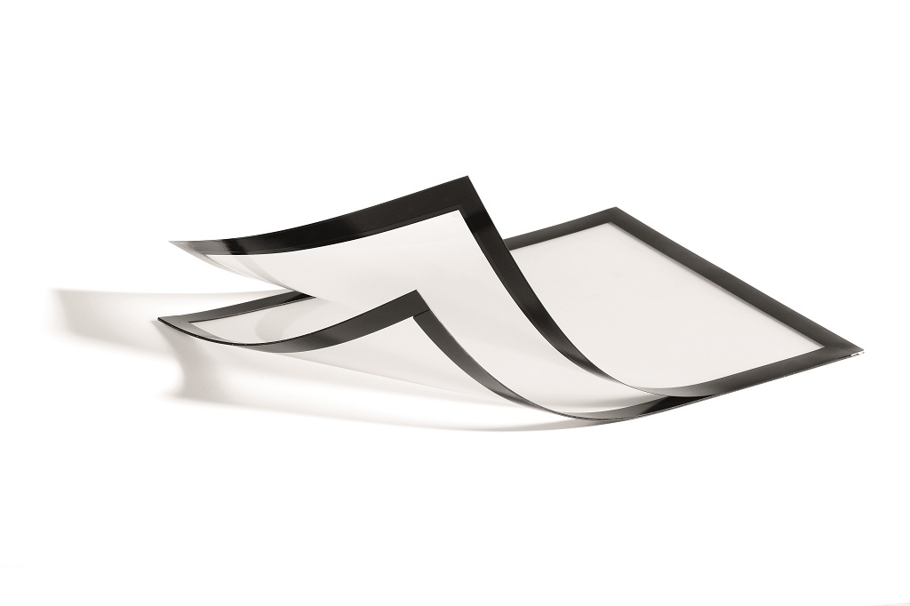 Panel s plne magnetickou zadnou časťou na posilnené držanie na kovových povrchoch. Jednoduché a rýchle vkladanie informácie formátu A4.