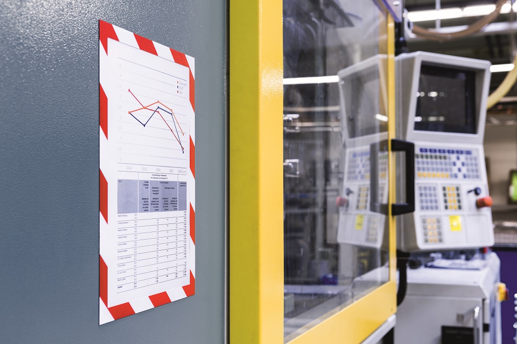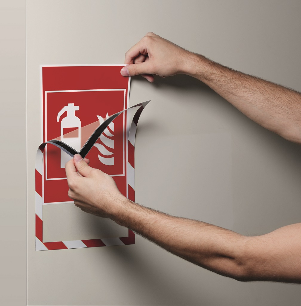 Bezpečnostný panel s magnetickou časťou na zadnej strane rámika na jednoduché a rýchle vkladanie informácie formátu A4. Vhodný na hladké magnetické povrchy, napr. magnetickú tabuľu. Farba červeno-biela. Balenie 5 kusov.