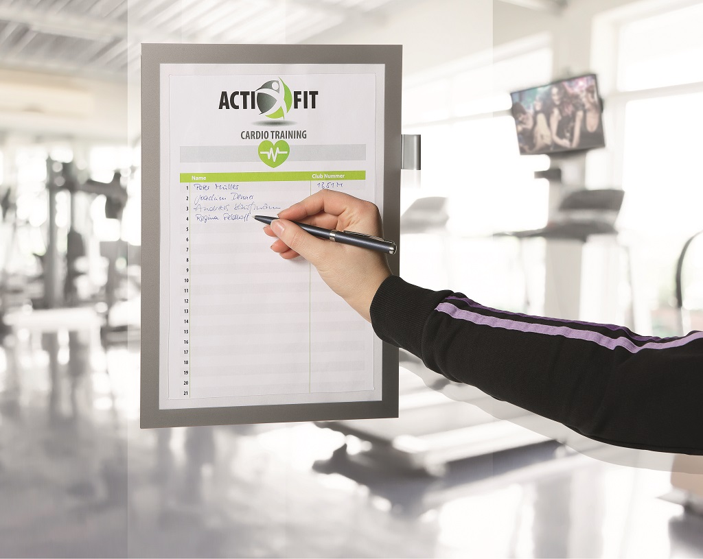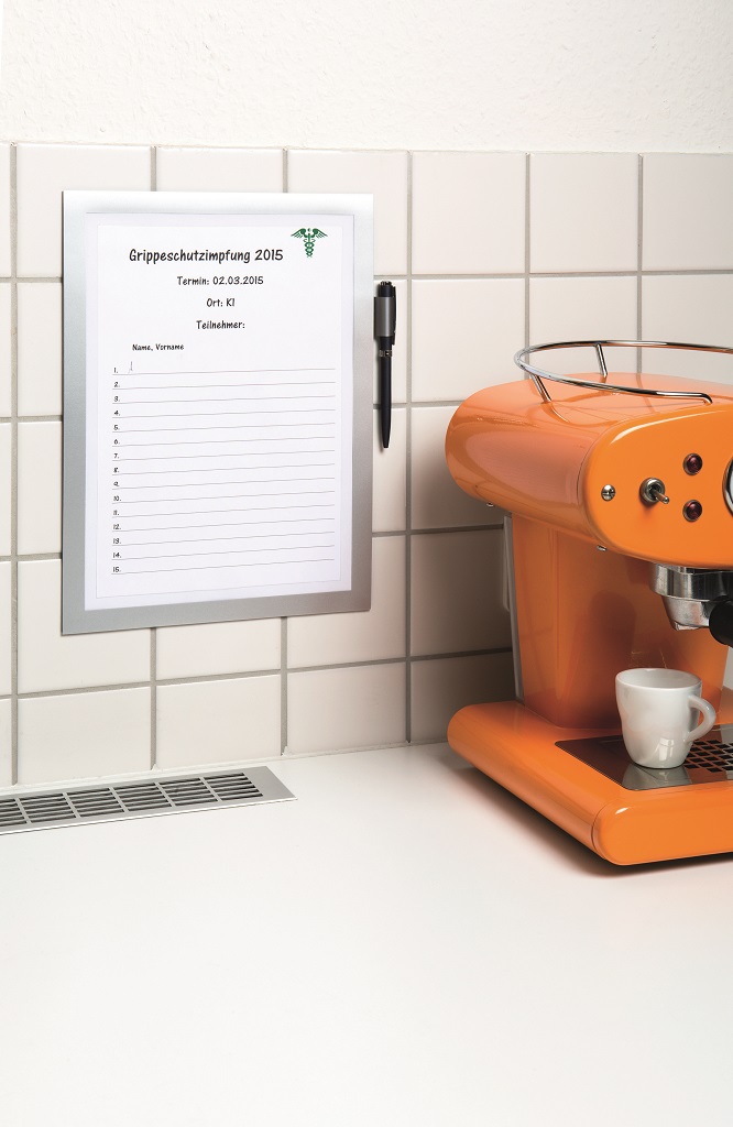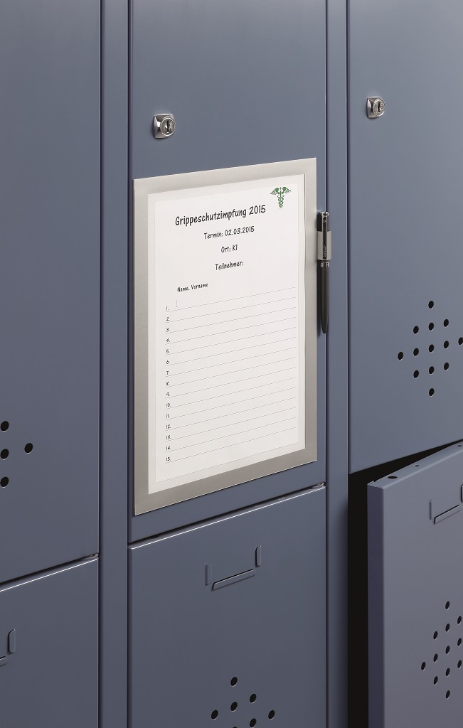 Samolepiaci panel s držiakom na pero slúži na písanie poznámok. Dodávaný s 5 listami na písanie. Formát A4. Farba strieborná.