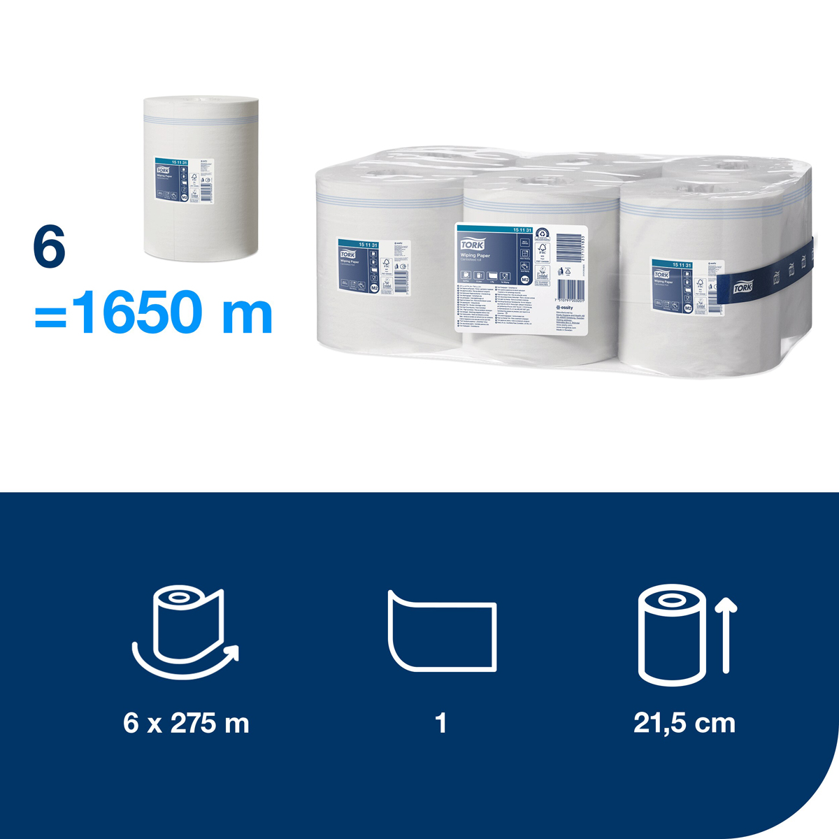 Tork jednovrstvová viacúčelová papierová utierka je ideálna na ľahké úlohy čistenia a na utieranie rúk. Táto papierová utierka sa môže používať v Tork® zásobníku na kotúče so stredovým odvíjaním, ktorý je vysokokapacitným, viacúčelovým riešením pre profesionálne prostredia, kde sú na utieranie povrchu potrebné obe ruky.