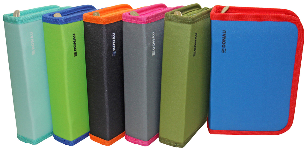 Peračník DONAU 1-zipsový 2-klopý plný, mix farieb, bal. 12 ks