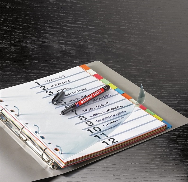 Permanentný popisovač s vysoko nepriehľadným atramentom, vhodný na popisovanie priesvitných fólií na spätnú projekciu, sklo a umelú hmotu. Vodeodolný, zmazateľný iba liehom. Hrot okrúhly, šírka stopy 0,3 mm. Väčšie balenie 10 ks.