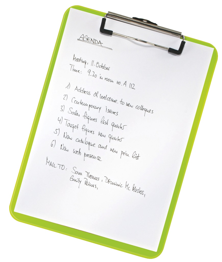 Pevná písacia podložka A4 na každodenné použitie v sviežich farbách WOW s dvojfarebným efektom. Silná kovová spona na uchytenie až 80 listov, háčik na zavesenie. Materiál polystyrol. Väčšie balenie 10 ks. Farba metalická zelená.