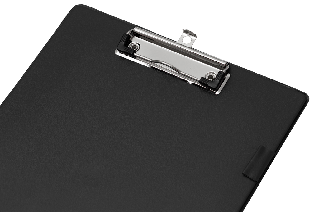 Písacie podložky s klipom a úchytom pre pero, vyrobené zo silnej lepenky potiahnutej plastovou fóliou. Vhodné na dokumenty formátu A4. Kapacita 50 listov. Väčšie balenie 12 ks. Farba čierna.