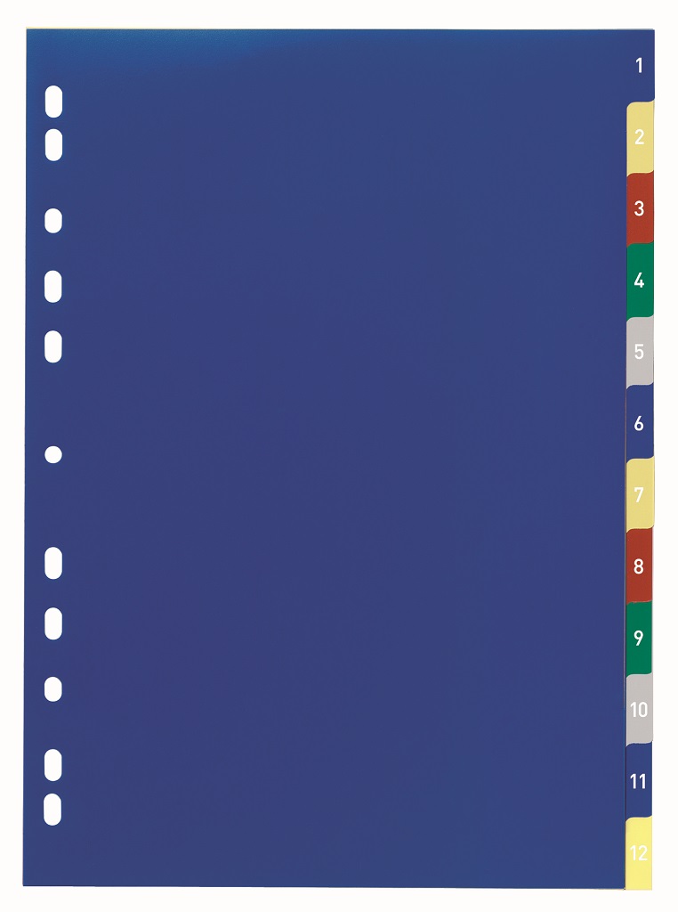 Farebný číselný rozraďovač vyrobený zo zosilneného plastu s eurodierovaním, popisovateľný papierový titulný list na ľahkú orientáciu v dokumentoch. Výsledný dokument pôsobí upravene a reprezentatívne. Väčšie balenie 20 sád.