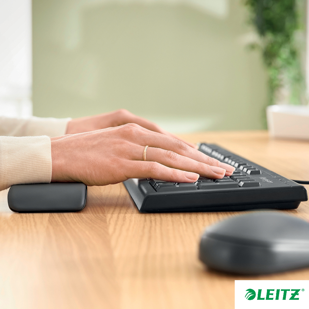 Podložka pod zápästie Leitz Ergo certifikovaná inštitútom IGR (Inštitút pre zdravie a ergonómiu) podľa normy DIN 26800 EN ISO 15537. Je prispôsobená celej dĺžke klávesnice a poskytuje plnú oporu. Počítačová opierka zápästia má 2 nastavenia výšky a penové polstrovanie, ktoré zaisťuje správne nastavenie zápästia a znižuje riziko zranenia z opakovaného namáhania. Ergonomická nastaviteľná opierka zápästia ku klávesnici, ktorá podporuje zdravú polohu rúk a zlepšuje zarovnanie zápästia. Otočením opierky zápästia si môžete vybrať z dvoch výškových nastavení (15 mm x 22 mm). Otierateľný materiál s penovým polstrovaním pre kvalitu a pohodlie, vyrobené z netoxických materiálov. Hmotnosť 0,79 kg.