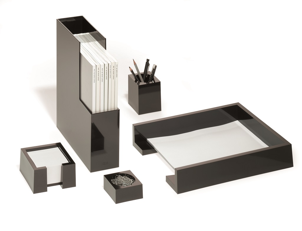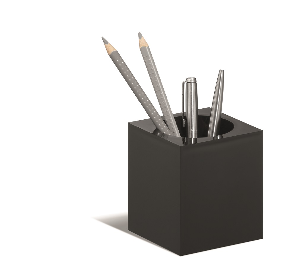 Pohárik na odkladanie pier, ceruziek a zvýrazňovačov. Rozmery 75 × 90 × 75 mm.