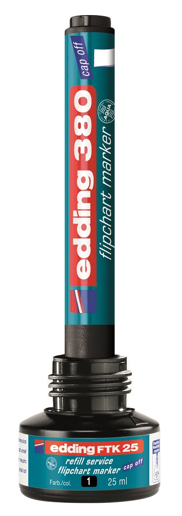 Popisovač s atramentom na vodnej báze a vlastnosťou Cap off, zabraňujúcou vysychaniu atramentu pri otvorenom hrote aj niekoľko dní. Na popisovanie flipchartových blokov a iných archov papiera. Opätovne naplniteľné atramentom FTK 25 (obj. kód ED625101), ktorý neprepíja na druhú stranu papiera. Hrot okrúhly, šírka stopy 1,5 – 3 mm. Väčšie balenie 10 ks.