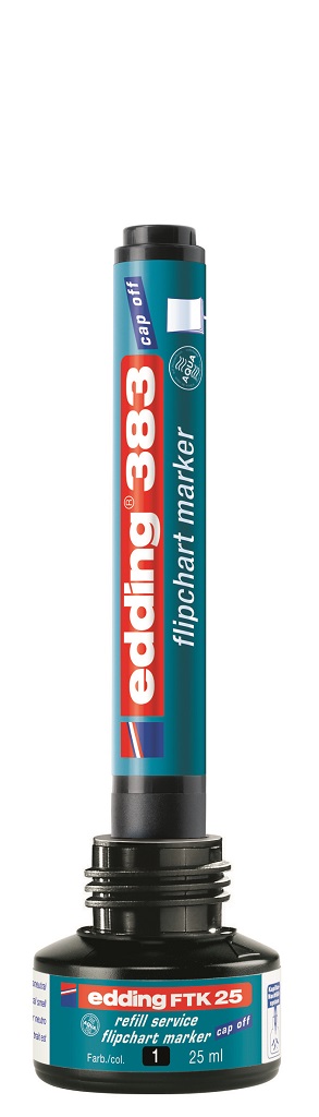 Popisovač s atramentom na vodnej báze a vlastnosťou Cap off, zabraňujúcou vysychaniu atramentu pri otvorenom hrote aj niekoľko dní. Na popisovanie flipchartových blokov a iných archov papiera. Opätovne naplniteľné atramentom FTK 25 (obj. kód ED625101), ktorý neprepíja na druhú stranu papiera. Hrot zrezaný, šírka stopy 1 – 5 mm. Väčšie balenie 10 ks.