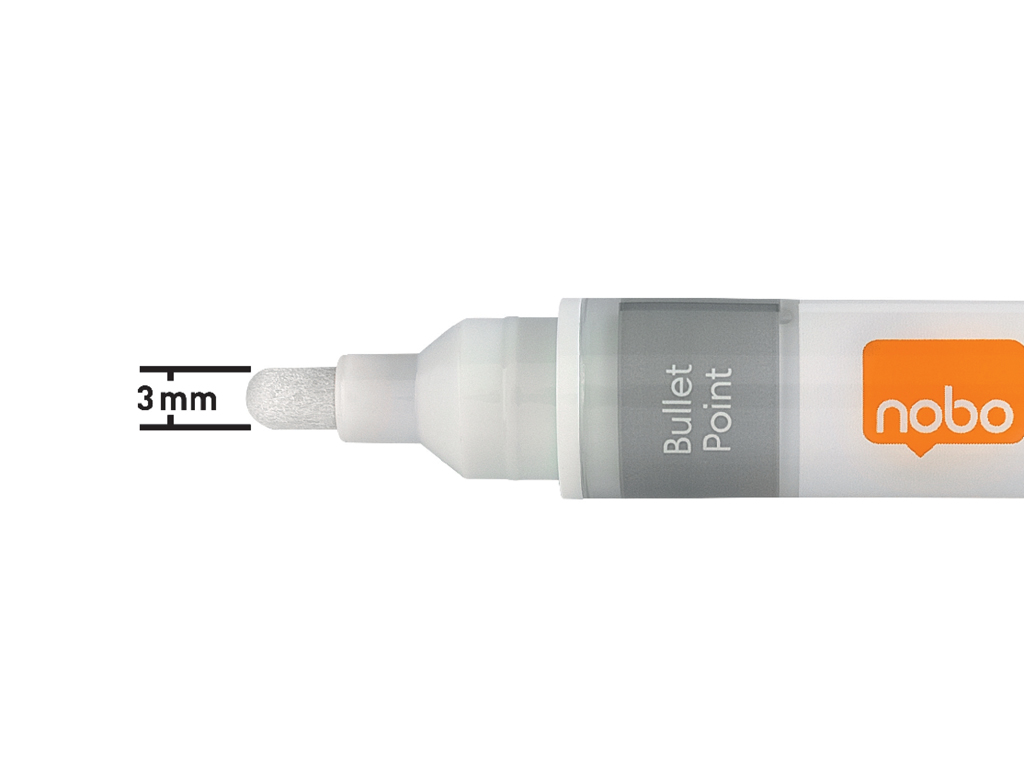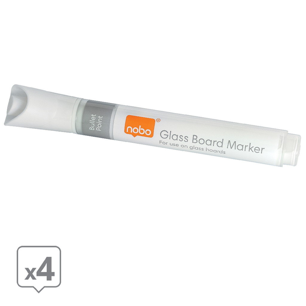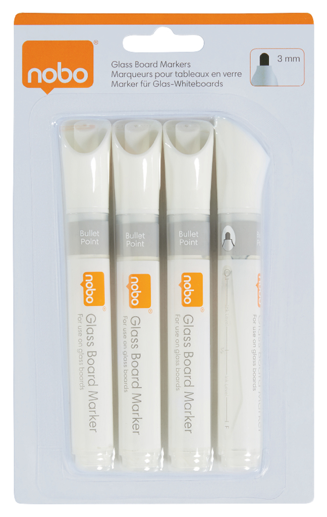 Popisovače Nobo na sklenené tabule s okrúhlym hrotom, balenie 4 ks, biele