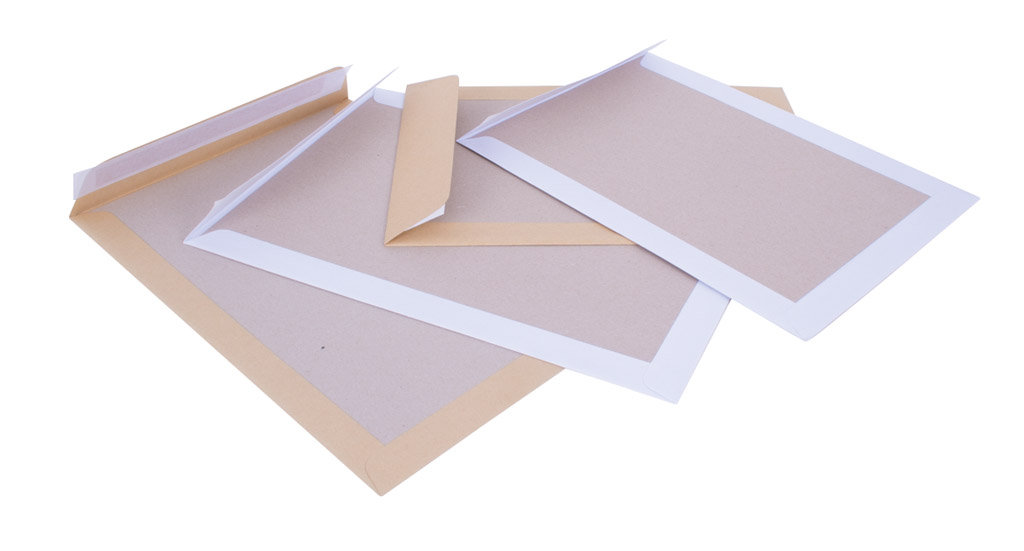 Poštové obálky C4 s páskou, s kartónovou zadnou stranou hnedé
