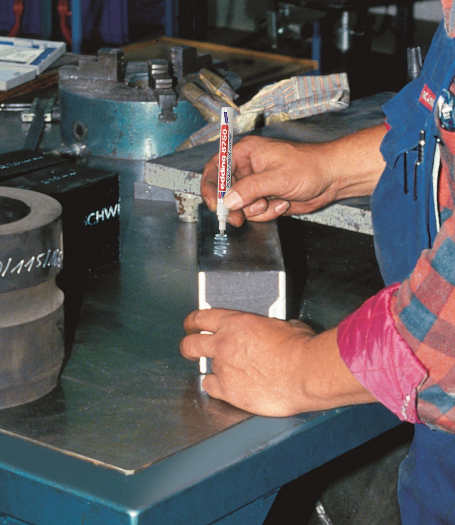 Priemyselný popisovač s hliníkovým obalom a vysoko permanentným pigmentovým atramentom s nepriehľadnou lakovou úpravou. Ideálny na mastné a zaprášené kovové povrchy. Hrot okrúhly, šírka stopy 2 – 4 mm. Väčšie balenie 10 ks.