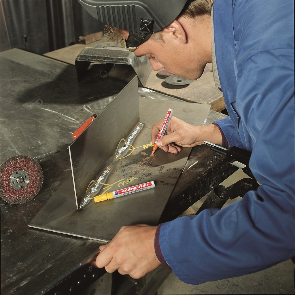 Priemyselný popisovač s hliníkovým obalom a vysoko permanentným pigmentovým atramentom s nepriehľadnou lakovou úpravou. Ideálny na mastné a zaprášené kovové povrchy. Hrot okrúhly, šírka stopy 2 – 4 mm. Väčšie balenie 10 ks.