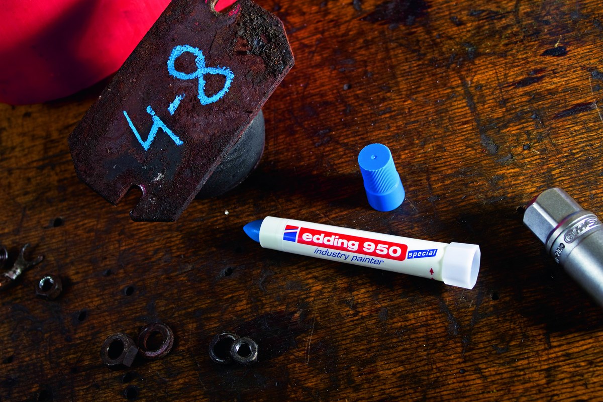 Farebná pasta so silne krycími účinkami a vysokou trvanlivosťou. Zvlášť vhodná na popisovanie pórovitých povrchov, zašpinených materiálov a hrdzavých kovov. Svetlostála, nezmazateľná, po zaschnutí vodeodolná. Šírka stopy 10 mm. Väčšie balenie 10 ks.