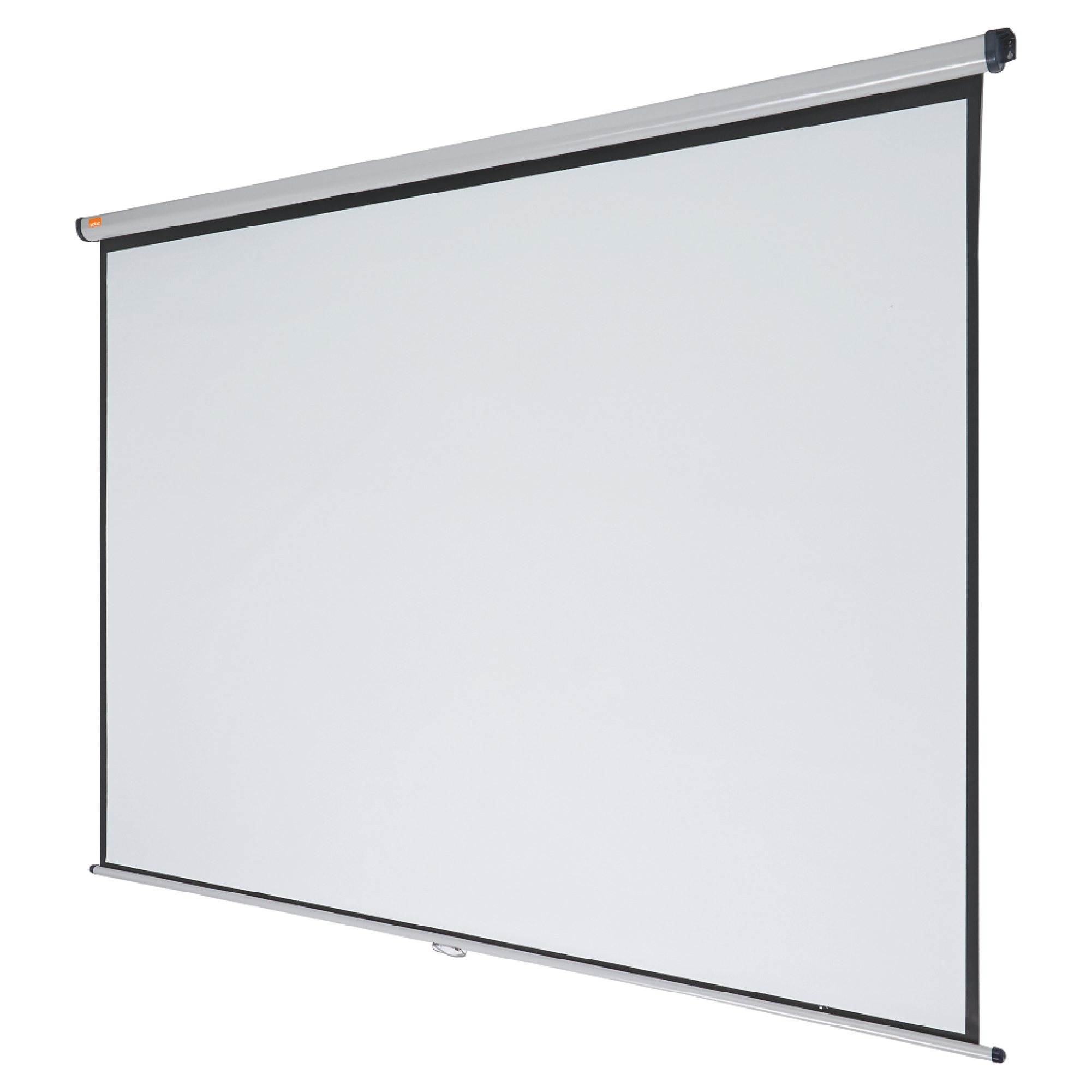 Žiarivý matne biely povrch plátna zaručuje ostrý, podrobný obraz, ktorý zreteľne uvidia všetci diváci. Dá sa ľahko zasunúť do puzdra, aby bolo chránené pred poškodením, alebo uložené, keď nie je používané. Doplnkové držiaky umožňujú inštalovať plátno pred popisovaciu tabuľu alebo ho skloniť smerom k divákom. 2400 × 1813 mm.