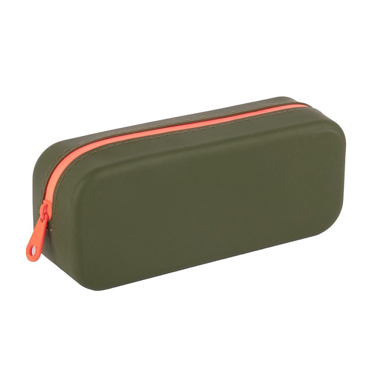 Silikónové puzdrá na perá Neon v obdĺžnikovom formáte. Každé puzdro má fluorescenčný oranžový detail, ktorý pridáva energiu a originalitu vášmu pracovisku. Sú funkčné, s vodoodpudivým zipsom, silikónom príjemným na dotyk a veľkosťou vhodnou na rôzne použitia. Rozmery: 7,5 x 18,5 x 5,5 cm. Mix farieb: šedá, modrá, oranžová a khaki. Bez možnosti výberu farby.