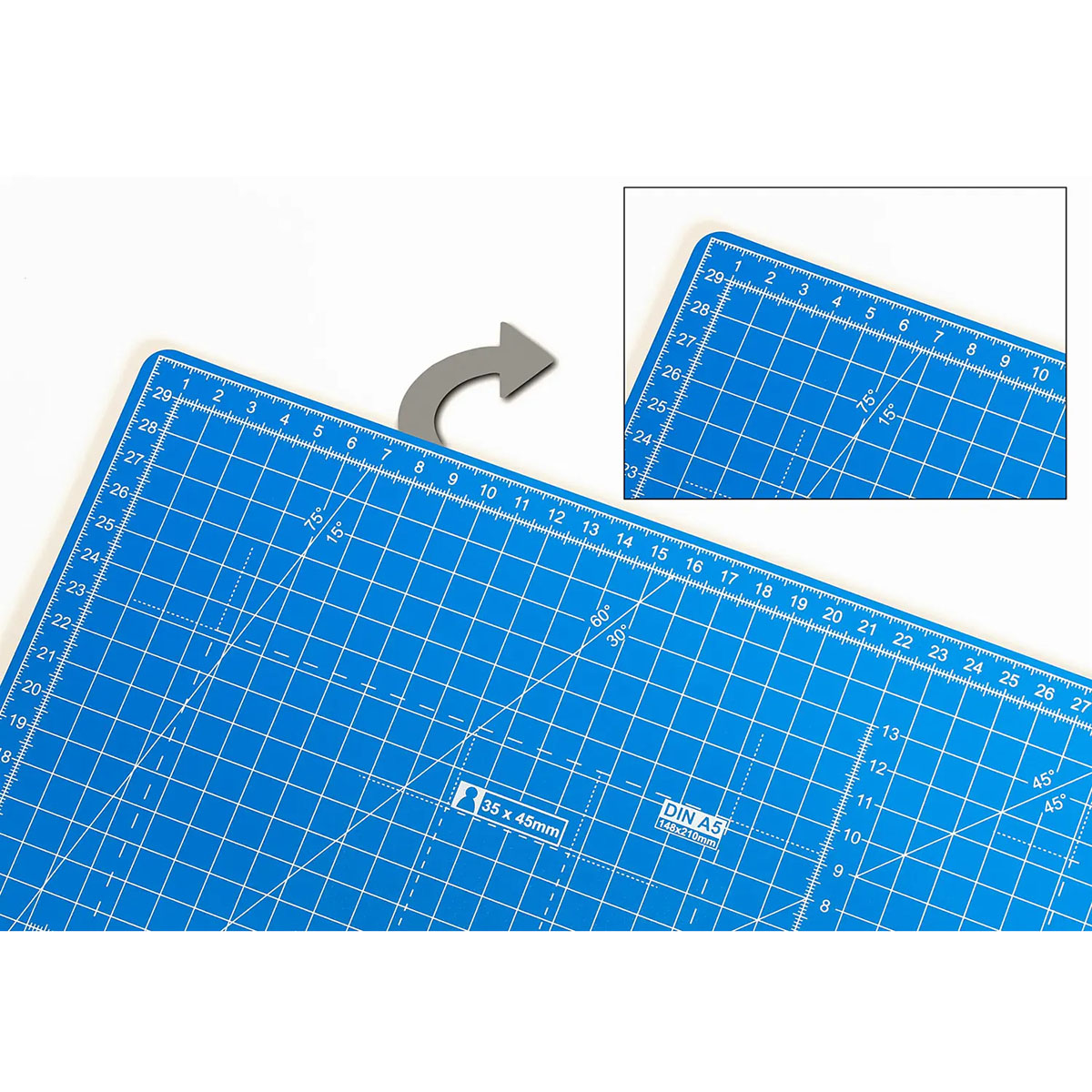 Obojstranná rezacia podložka s robustnou 5-vrstvovou konštrukciou s jadrom odolným proti prerezaniu, s predtlačenou mriežkou na jednej strane a protišmykovou zadnou stranou poskytuje čisté a precízne rezanie a chráni pracovný povrch pred dorezaním.
