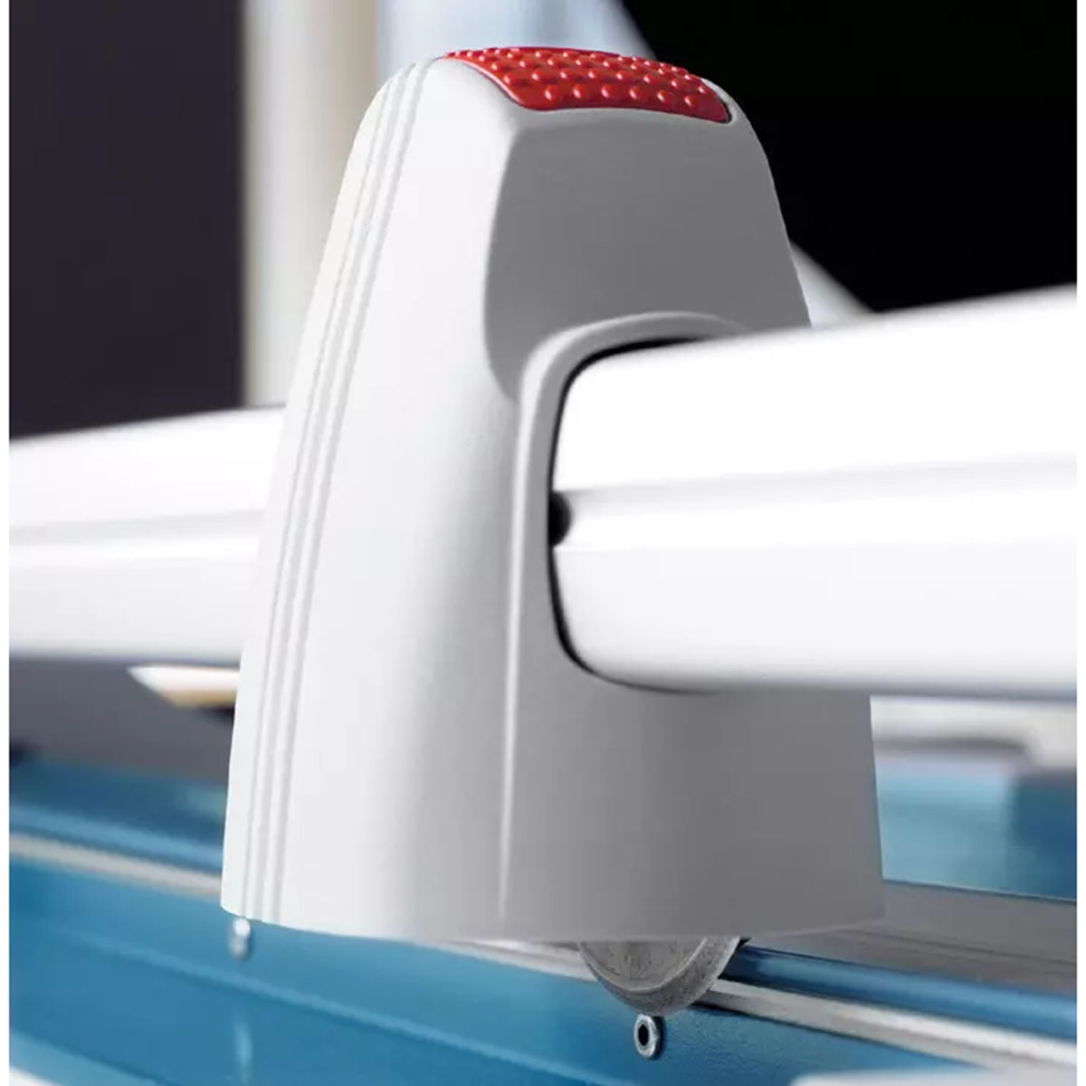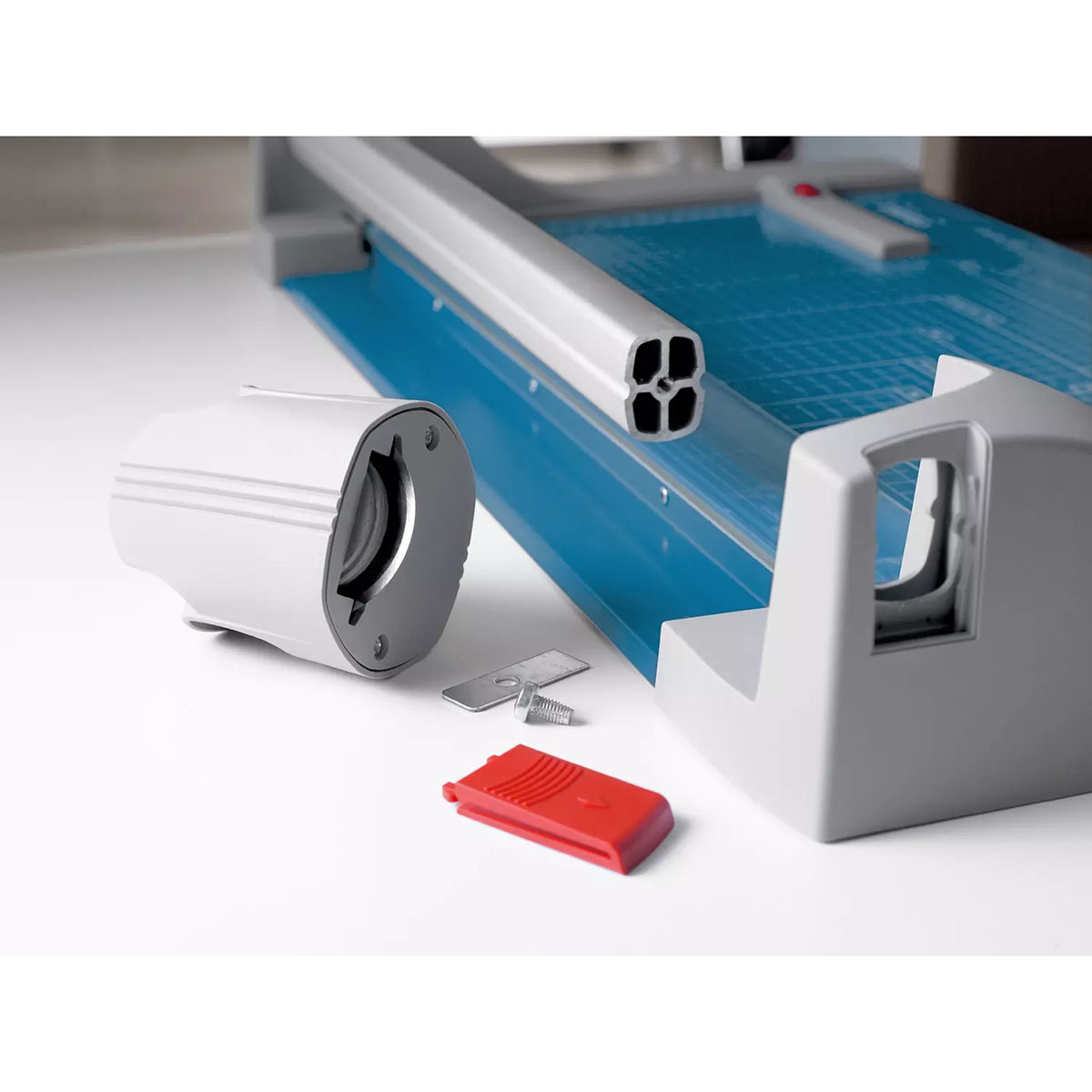 Profesionálna rezačka s kovovou základňou a presným rezom na grafické účely (filmy, fólie, papier). Kvalita na dosiahnutie najvyššej presnosti – automatický prítlak pohybom rezacej hlavy, nastaviteľný zadný doraz s použitím na oba boky, množstvo zakreslených orientačných DIN formátov. Kruhový nôž umiestnený v plastovom ochrannom kryte sa automaticky brúsi pri rezaní o protinôž (oba nože z tvrdenej ocele). Mierka v cm/inch. Možnosť montáže na stenu.