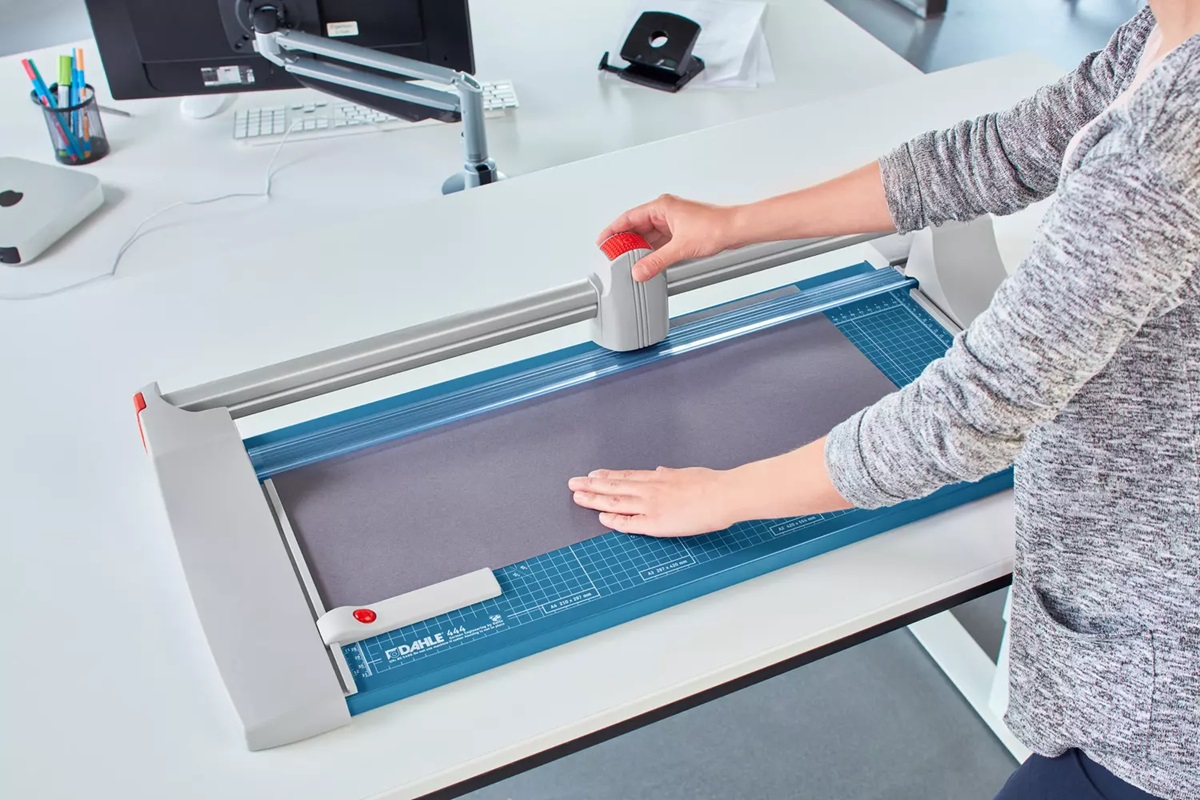 Profesionálna rezačka s kovovou základňou a presným rezom na grafické účely (filmy, fólie, papier). Stabilná kovová základňa s protišmykovými gumenými nožičkami pre bezpečné udržanie rotačného rezača na mieste