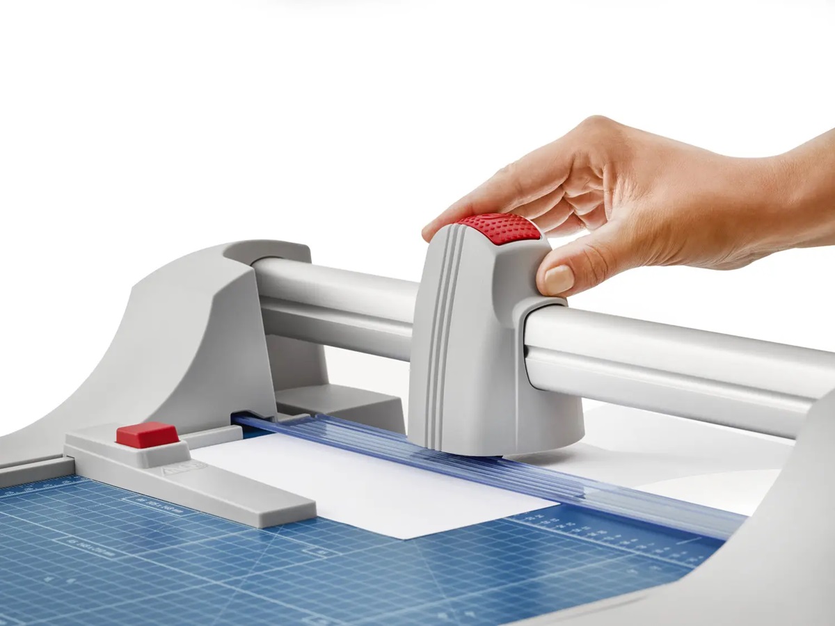 Profesionálna rezačka s kovovou základňou a presným rezom na grafické účely (filmy, fólie, papier).Stabilná kovová základňa s protišmykovými gumenými nožičkami pre bezpečné udržanie rezačky na mieste. Užitočné formátovacie čiary na základni s milimetrovým delením pozdĺž reznej hrany ešte viac uľahčujú zarovnanie rezaného materiálu. Samoostriaca oceľová rotačná čepeľ uzavretá v bezpečnostnej reznej hlave, brúsená a kalená. Brúsená spodná čepeľ z kalenej ocele. Kvalita na dosiahnutie najvyššej presnosti – automatický prítlak pohybom rezacej hlavy, nastaviteľný zadný doraz s použitím na oba boky, množstvo zakreslených orientačných DIN formátov. Kruhový nôž umiestnený v plastovom ochrannom kryte sa automaticky brúsi pri rezaní o protinôž (oba nože z tvrdenej ocele). Mierka v cm/inch. Možnosť montáže na stenu.