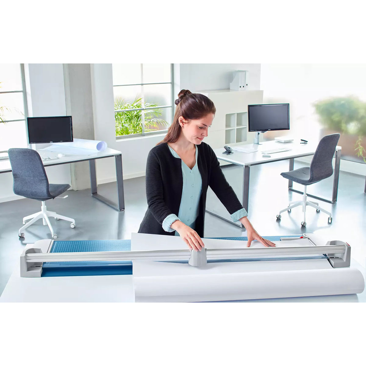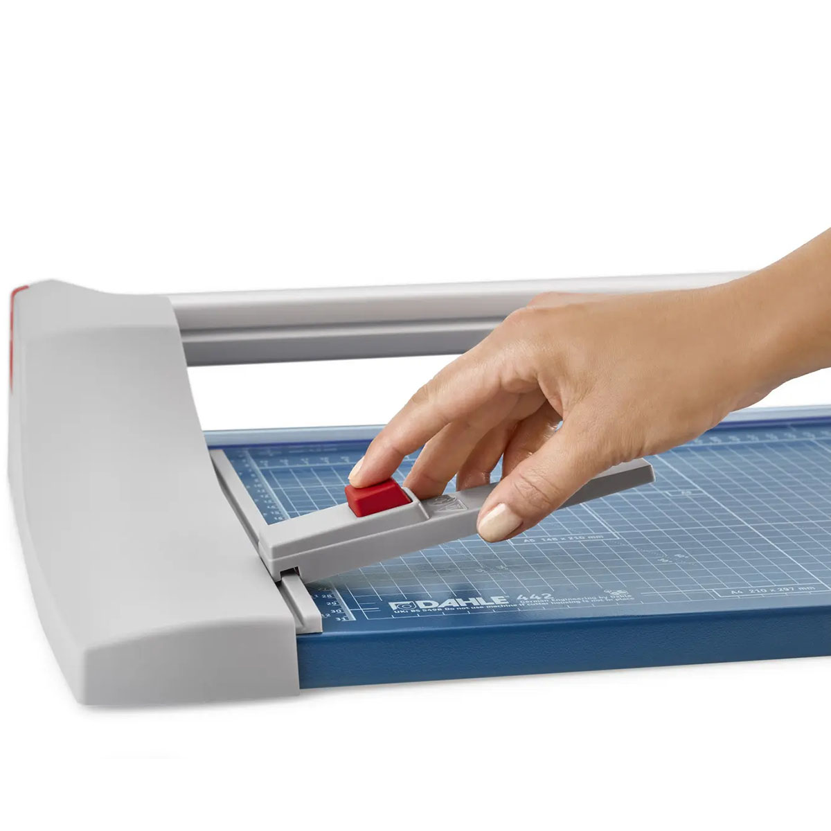 Profesionálna rezačka so stabilnou kovovou základňou s protišmykovými gumenými nožičkami a presným rezom na grafické účely (filmy, fólie, papier). Kvalita na dosiahnutie najvyššej presnosti – automatický prítlak pohybom rezacej hlavy, nastaviteľný zadný doraz s použitím na oba boky, množstvo zakreslených orientačných DIN formátov. Kruhový nôž umiestnený v plastovom ochrannom kryte sa automaticky brúsi pri rezaní o protinôž (oba nože z tvrdenej ocele). Mierka v cm/inch. Možnosť montáže na stenu.