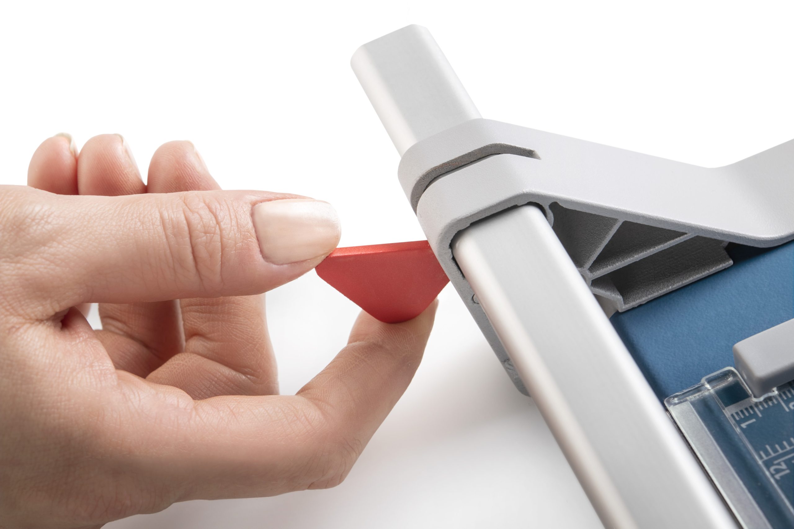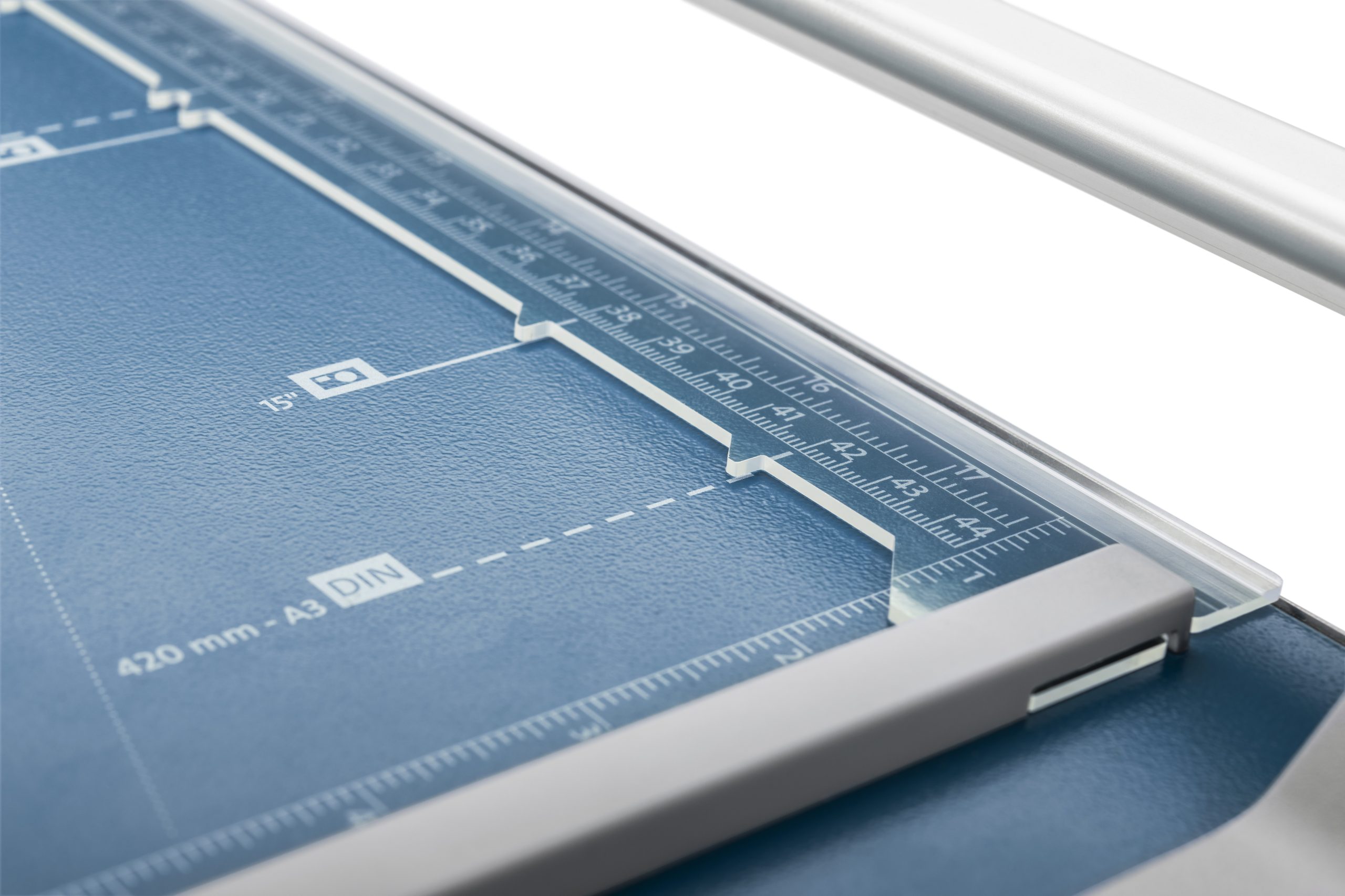 Užitočné formátovacie čiary na základni s milimetrovým delením pozdĺž reznej hrany uľahčujú zarovnanie rezaného materiálu.