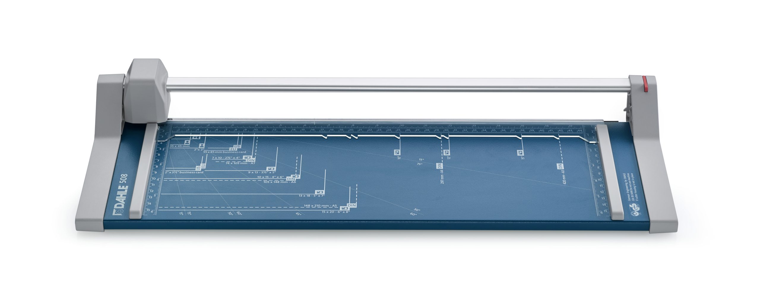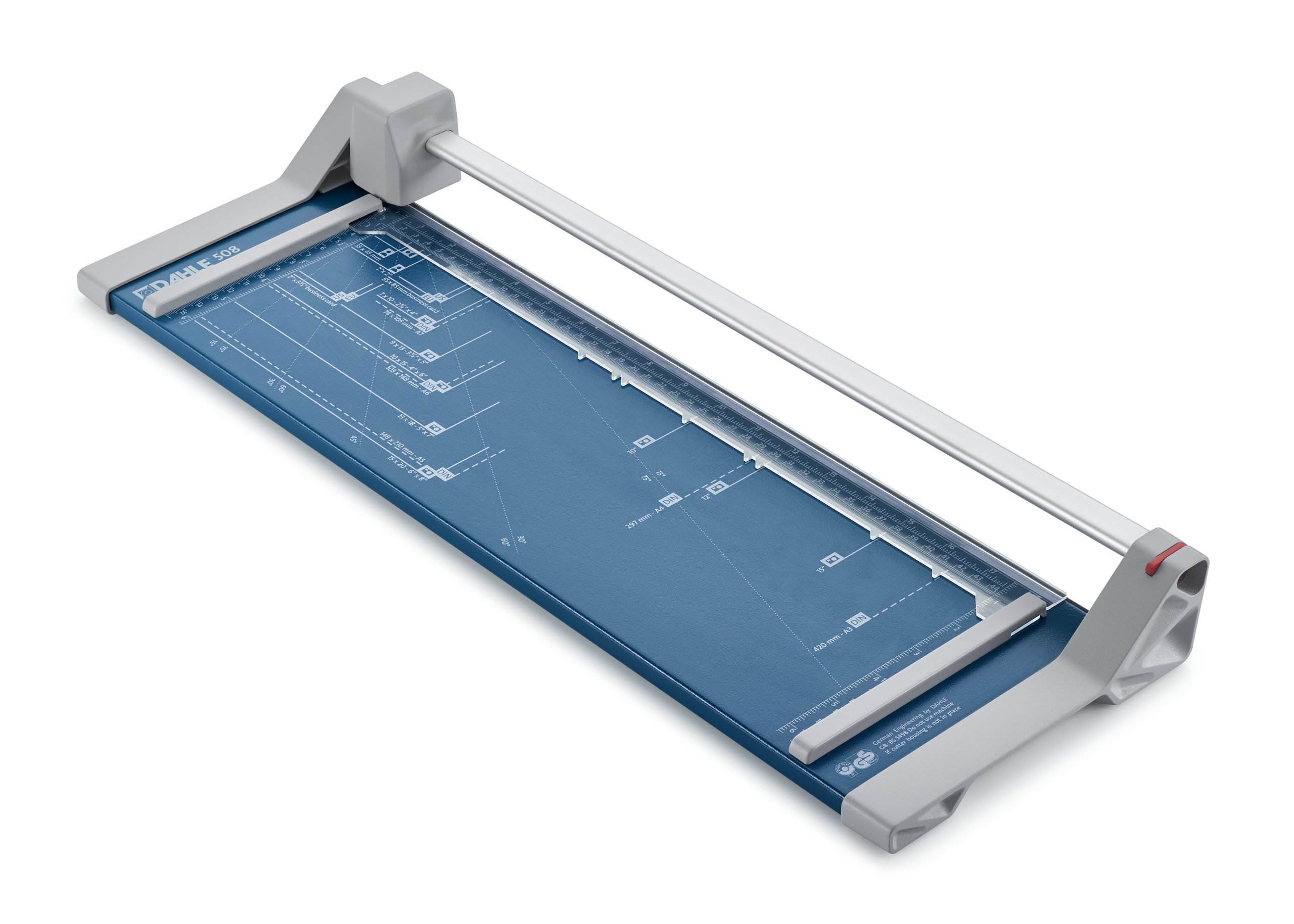 Rezačka s kruhovým nožom a kovovou základňou. Rotačný nôž v plastovom kryte, automatický prítlak, mierky v cm a DIN formátoch. Vhodná na rezanie papiera, etikiet, fotiek a filmov.