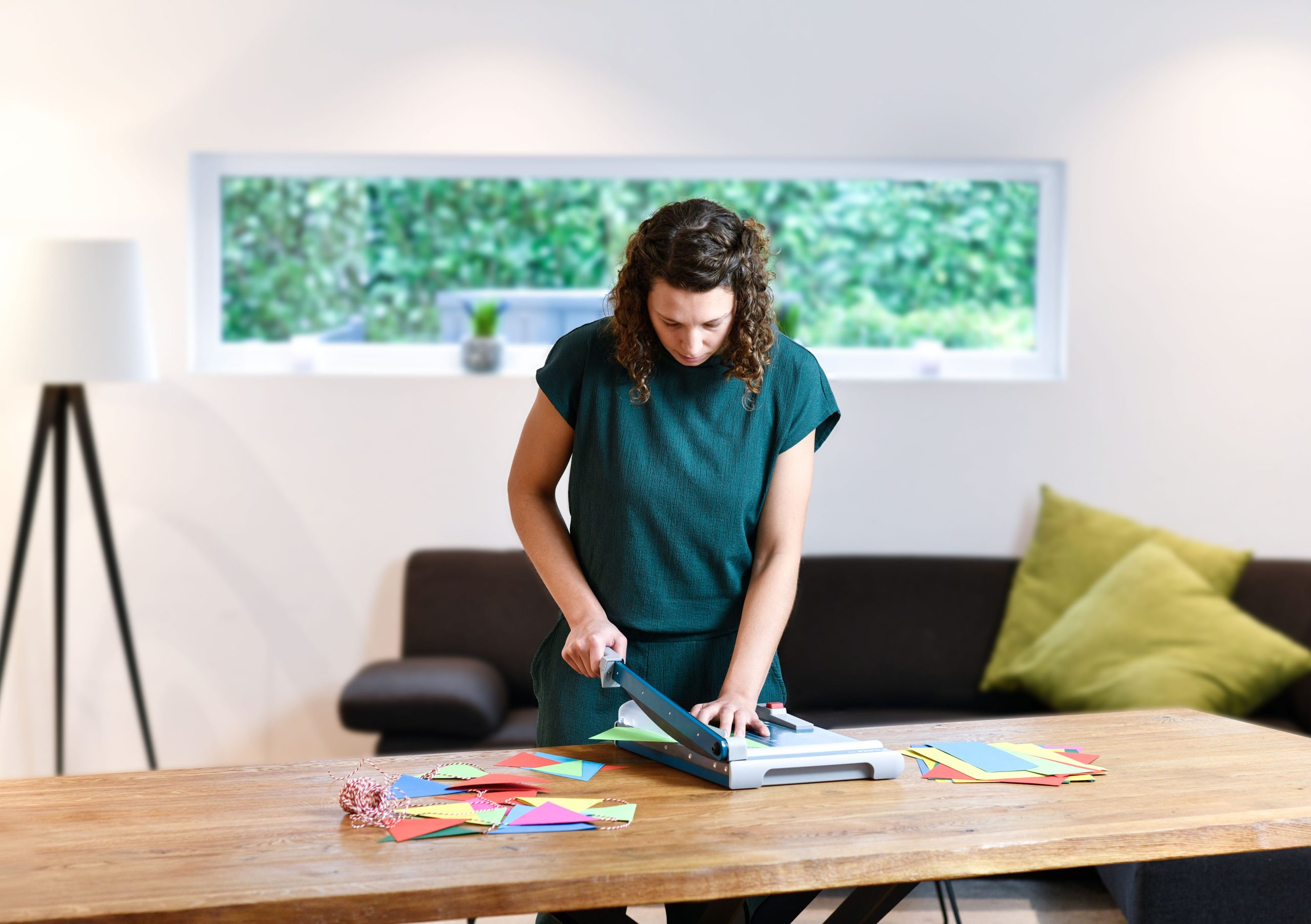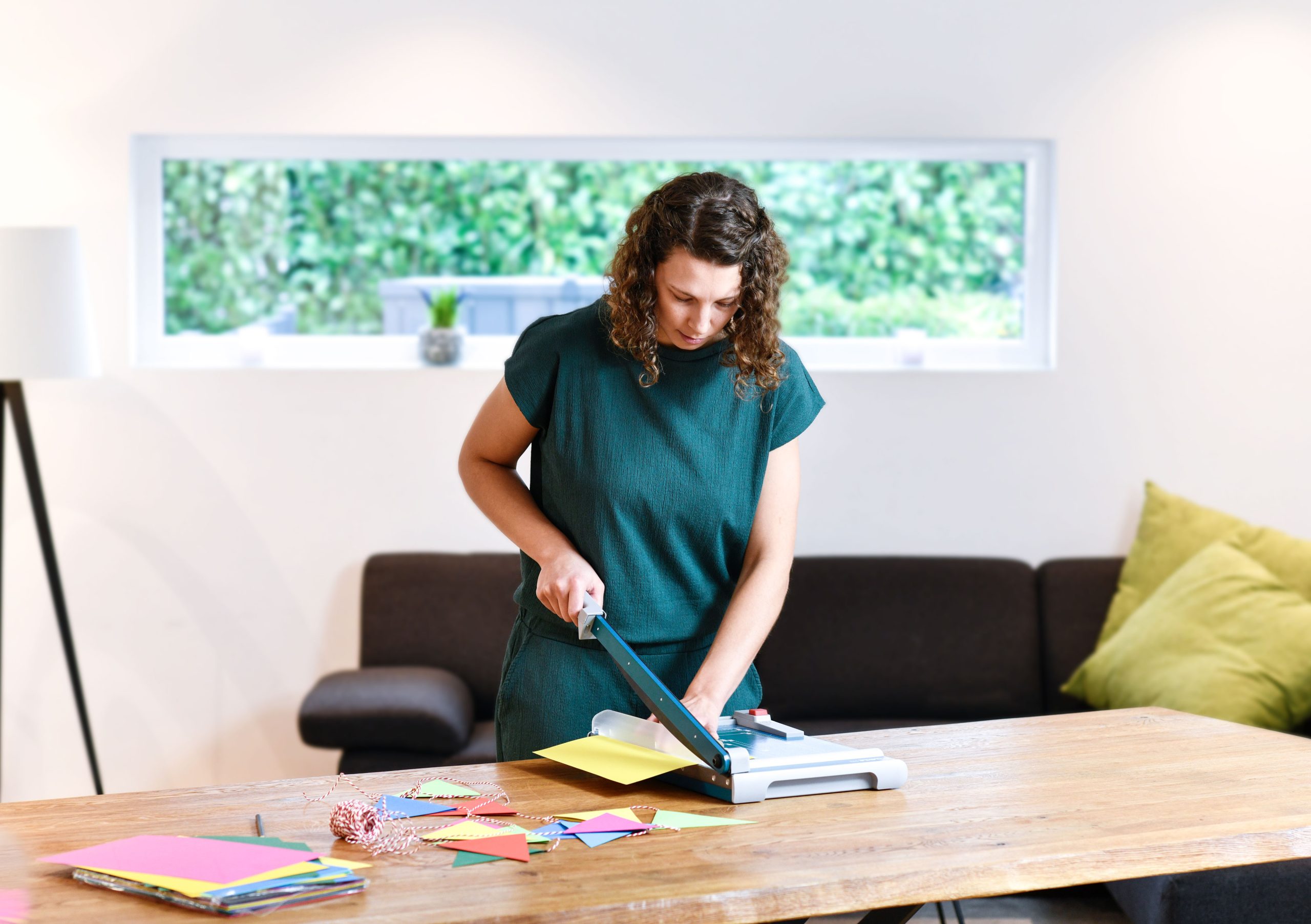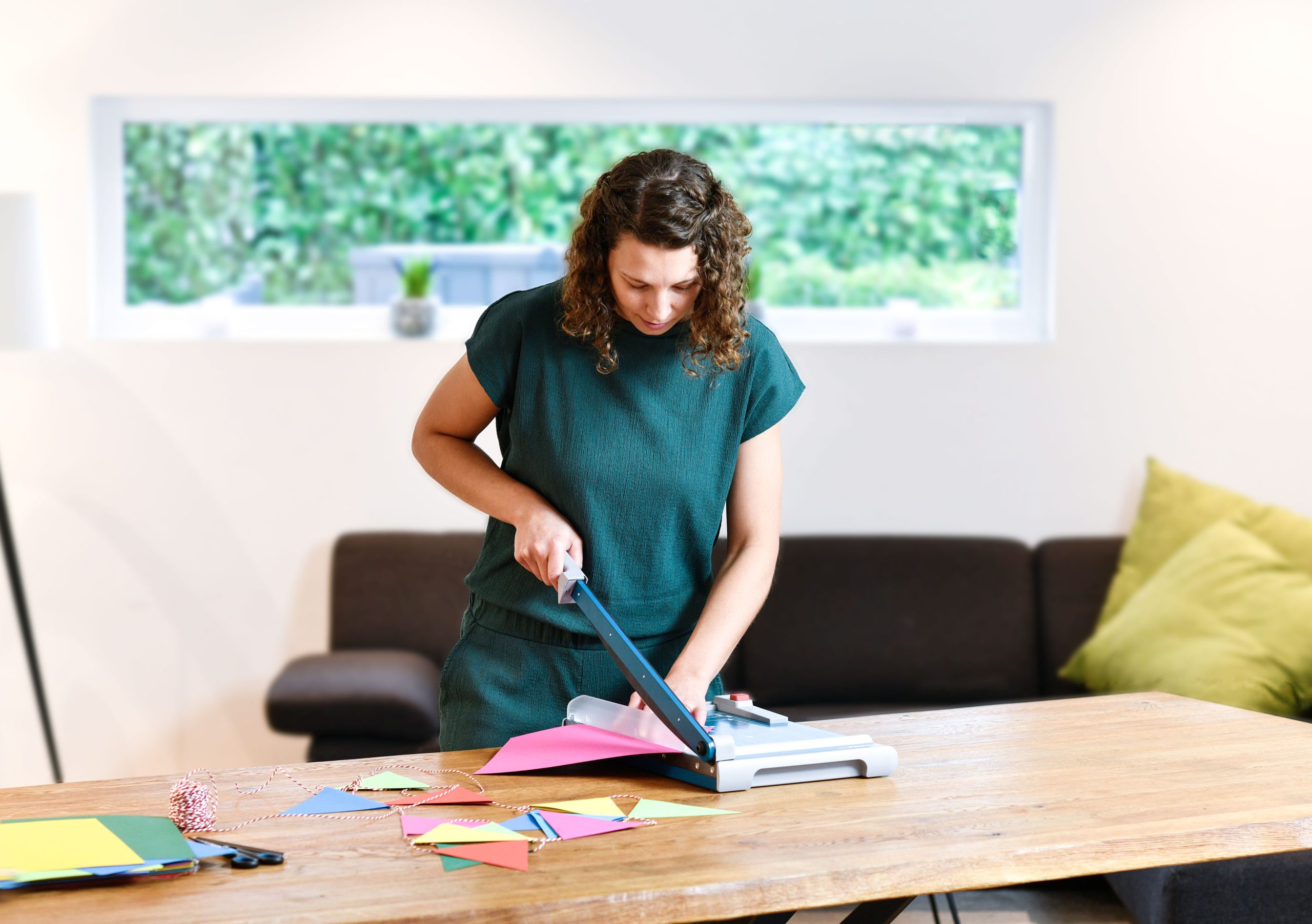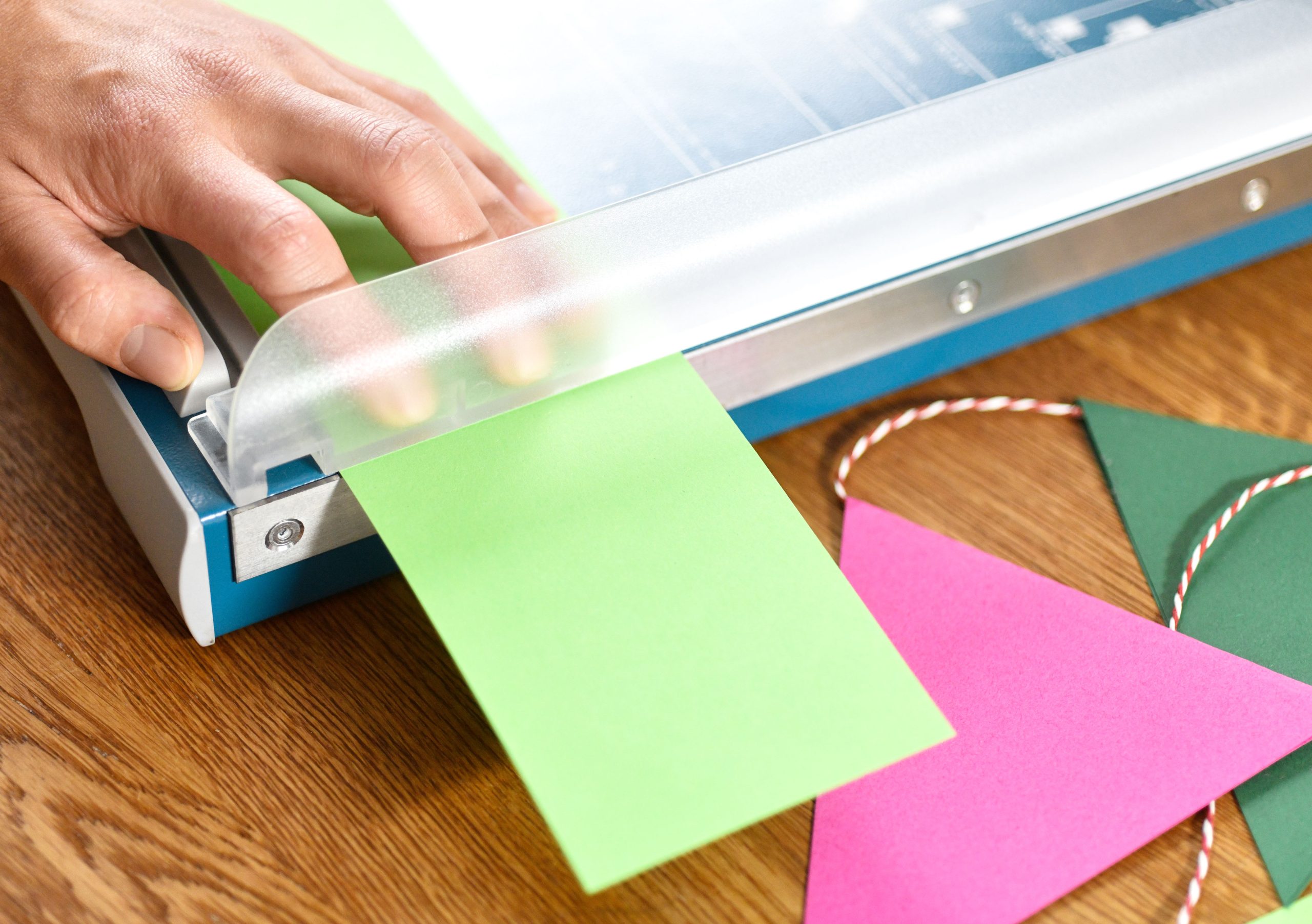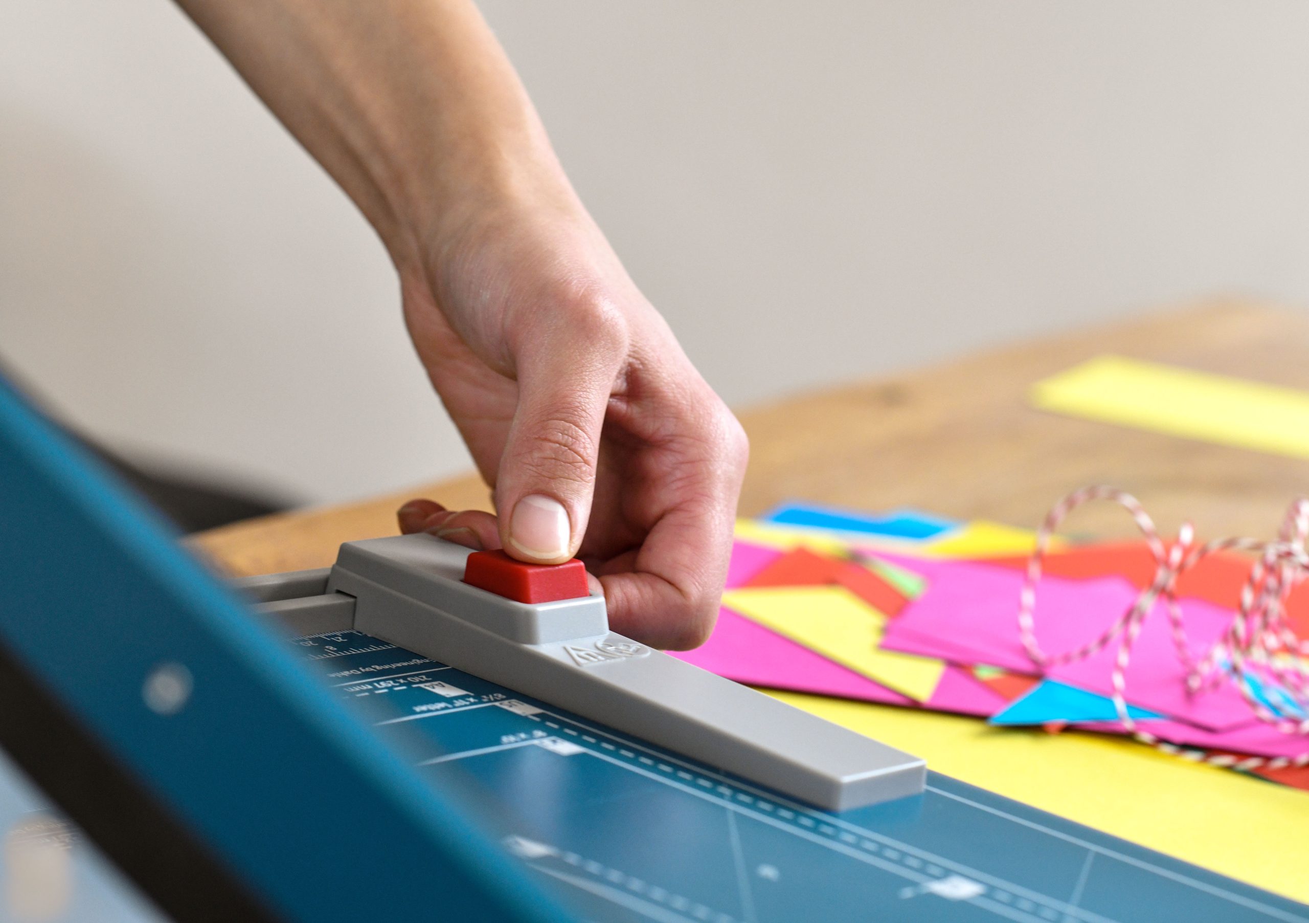 Rezačka z pevného oceľového plechu vhodná na rezanie papiera, kartónu, kože, plastu. Vrchný a spodný rovný nôž vyrobený z kvalitnej nožiarskej ocele Solingen, ručný prítlak s ochranu na prsty. Presná mierka v cm a DIN formátoch, zadný doraz, na spodnej časti výrezy na pohodlné prenášanie.
