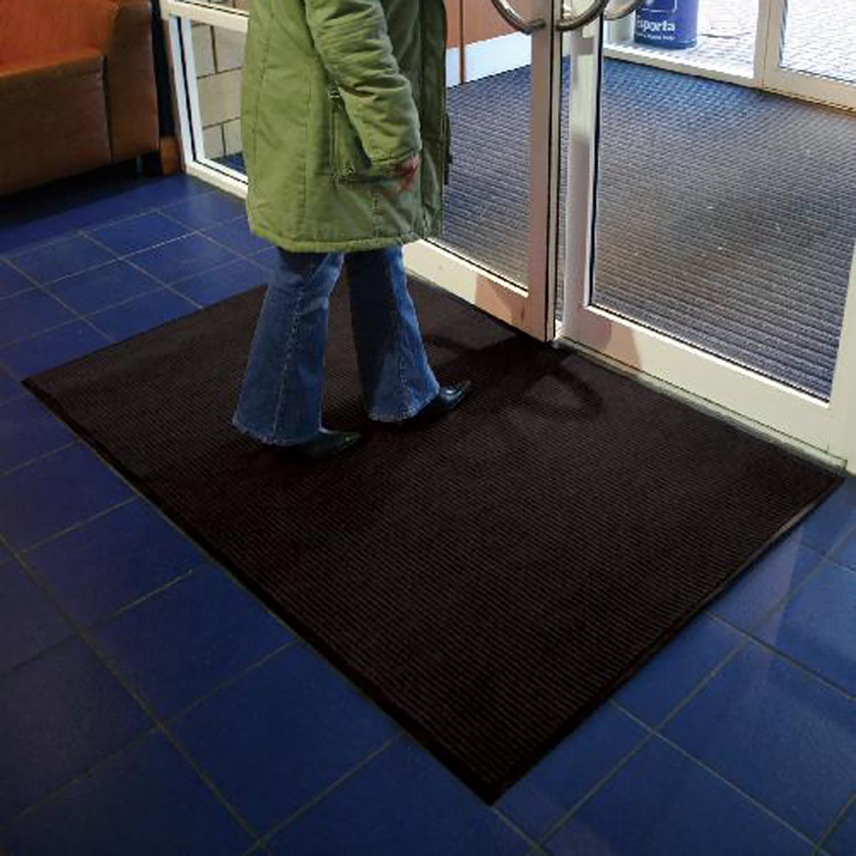 Rohož s trvanlivým rebrovaným povrchom, ktorý vytvára `kanály` na zachytávanie špiny a kamienkov a zachycuje vlhkosť z topánok. Výška rohože 9 mm. Materiál 100% polypropylén so spodnou stranou z PVC.