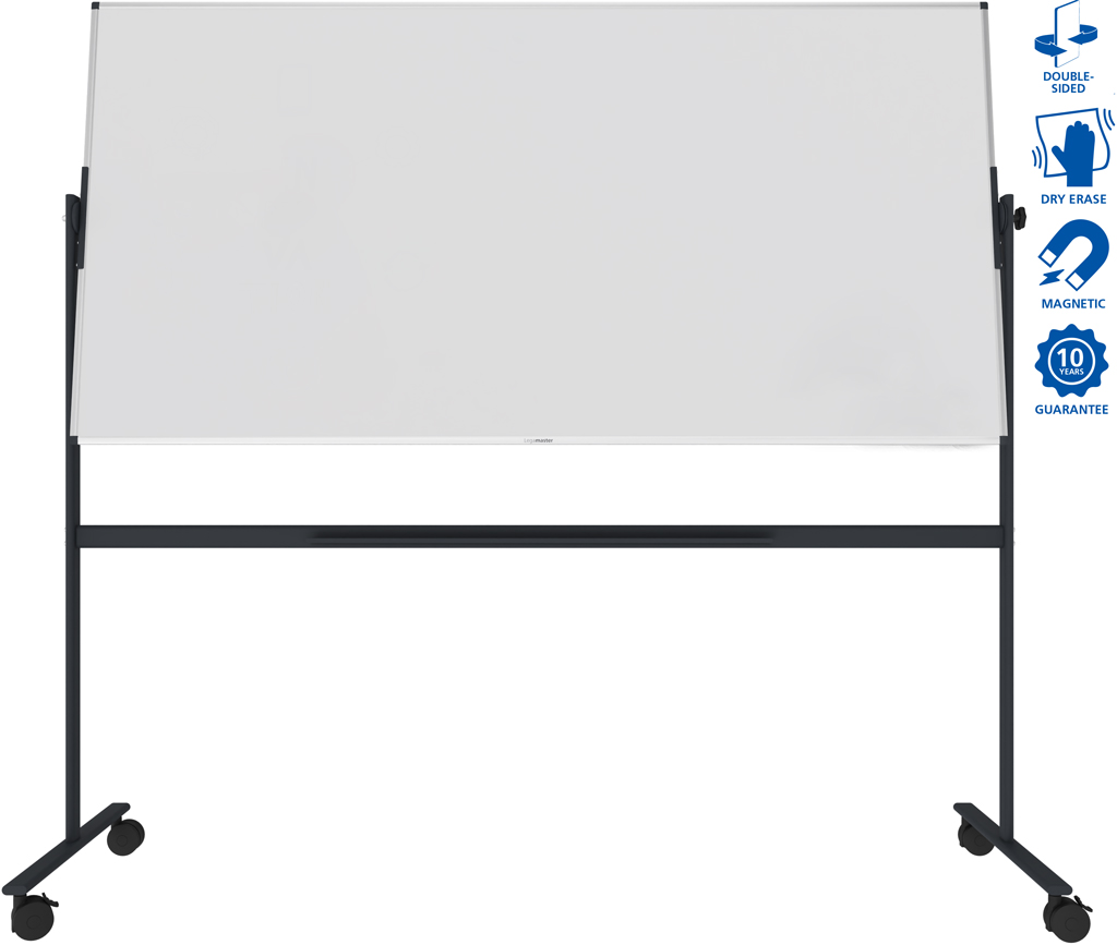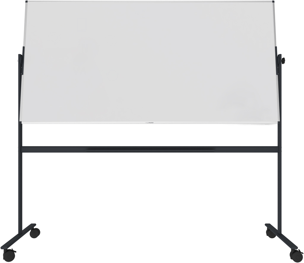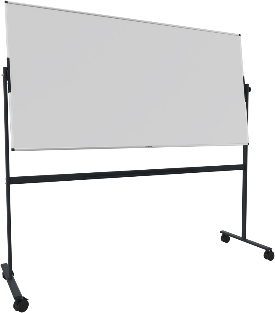 Základná rotačná tabuľa na príležitostné použitie v kancelárii, triede alebo v priemyselnom prostredí. Vhodná na písanie popisovačmi na tabuľu stierateľnými za sucha. Obojstranný, magnetický, lakovaný oceľový povrch dosky. Hliníkový rám so sivými plastovými rohovými krytkami. Upevnený na robustnom a mobilnom stojane s otočnou osou. Súčasťou balenia je odkladacia lišta. Rozmery v × š : 100 × 200 cm.