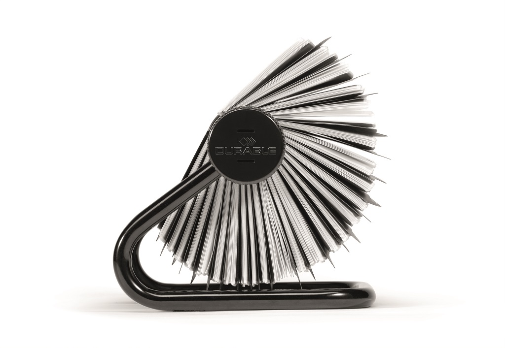 Rotačný vizitkár s 200 obojstrannými vreckami rozmerov 104 × 72 mm na 400 vizitiek. Dodávaný s 25 abecednými rozraďovačmi A – Z. Ľahký prístup k vizitkám, rýchla obsluha vďaka špeciálnemu rotačnému mechanizmu. Farba čierna.