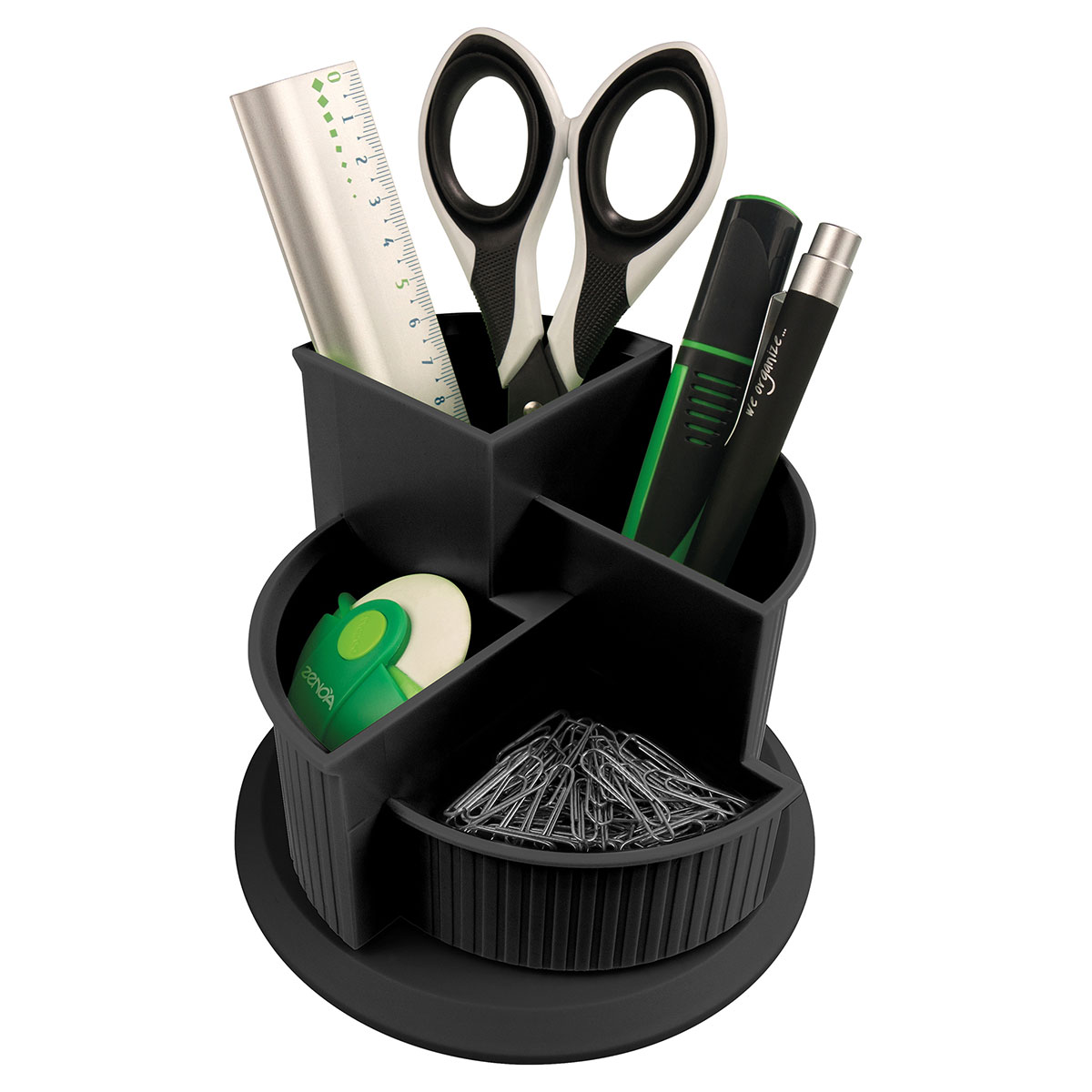 Rotačný stojan so 4 sekciami na písacie potreby a ďalšie drobnosti v dizajne rady Linear. Priemer 14 cm, výška 10 cm.