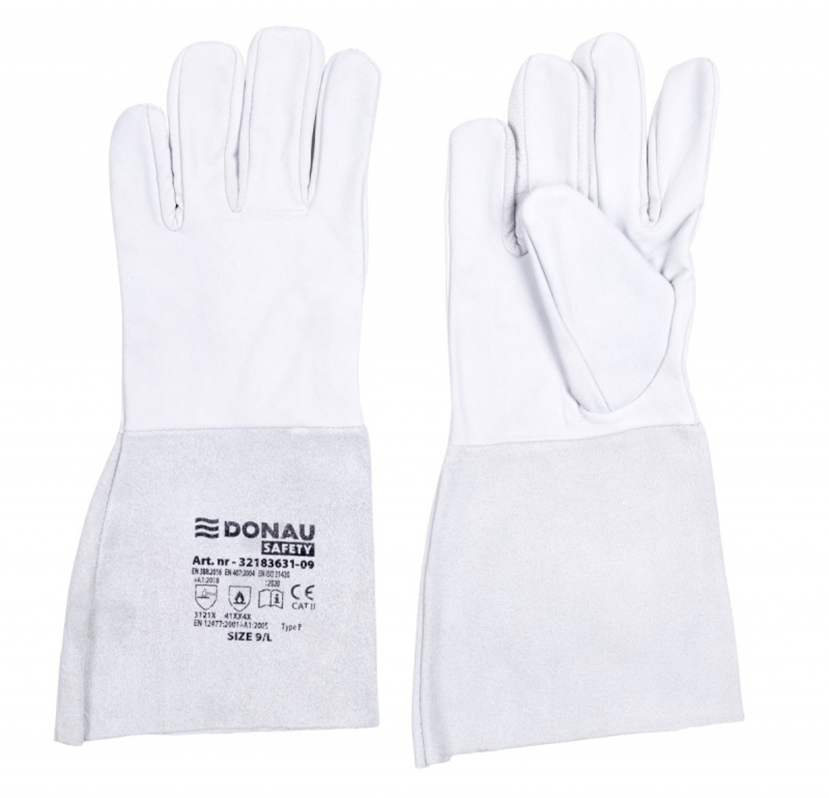 Rukavice ochranné celokoženné DONAU SAFETY zváracie TIG bielo-sivé veľ. 10/XL