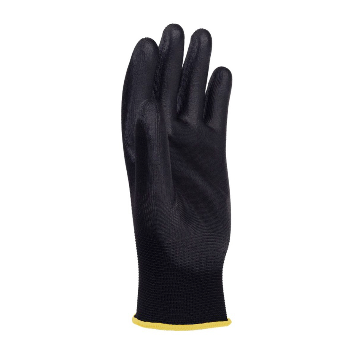 rukavice z kvalitného polyesterového úpletu čiernej farby, v oblasti úchopu potiahnuté čiernym polyuretánom