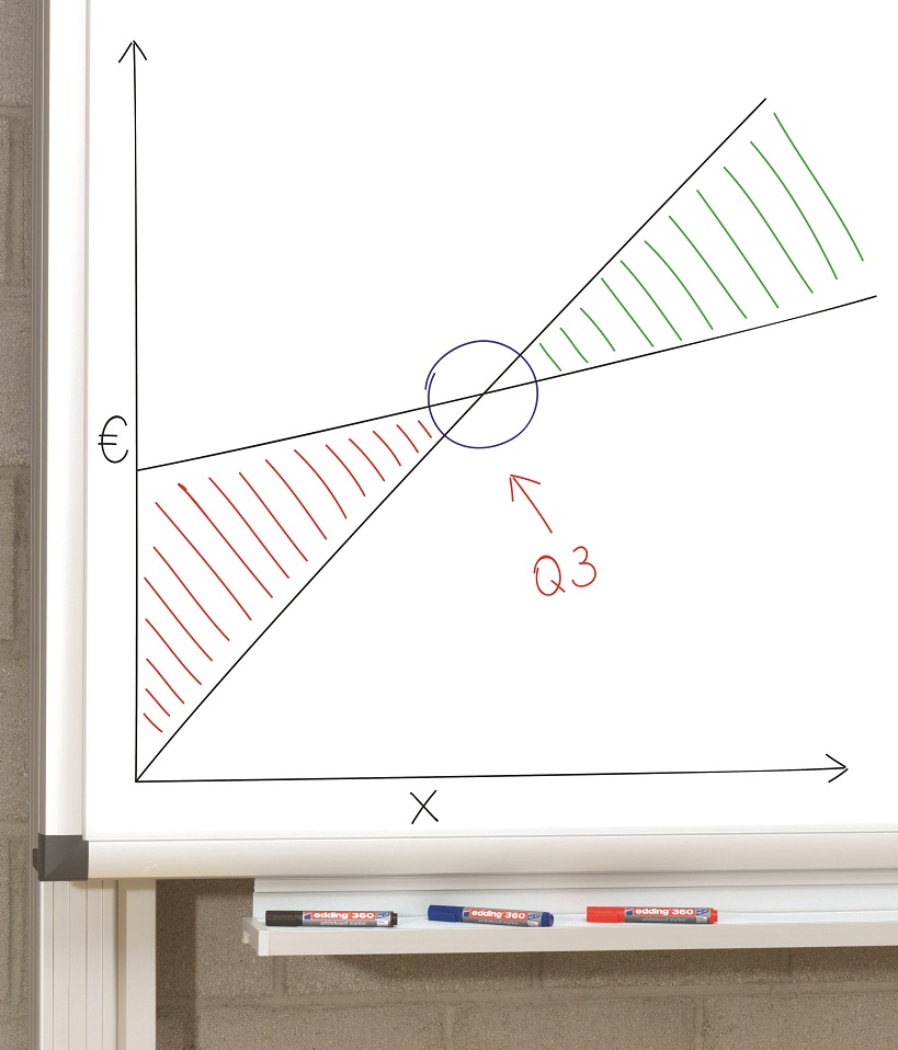 Popisovač vhodný na biele tabule, stierateľný za sucha. Plnený pigmentovým atramentom slabého zápachu bez prísady butylacetátu s vlastnosťou „Cap off“, zabraňujúcou vysychaniu atramentu pri otvorenom hrote aj niekoľko dní. Dopĺňateľný atramentom edding BTK 25. Plastové telo, vymeniteľný hrot. Hrot okrúhly, šírka stopy 1,5—3 mm. Sada 4 ks v mixe farieb.