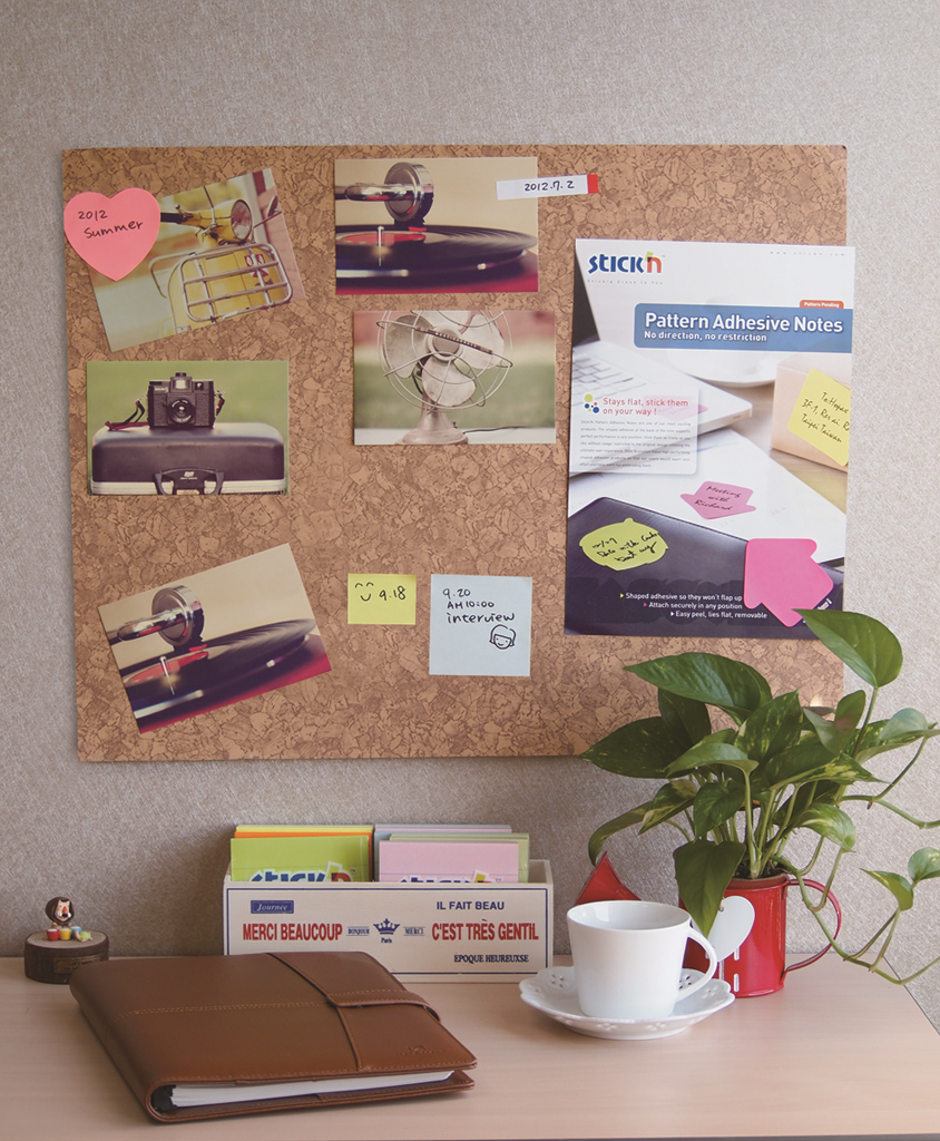 Na prichytenie nástenky na stenu sú v balení priložené obojstranne lepiace štvorčeky. Veľmi jednoduchá montáž i použitie. Hnedá farba s korkovým vzorom, rozmer 460 x 580 mm.